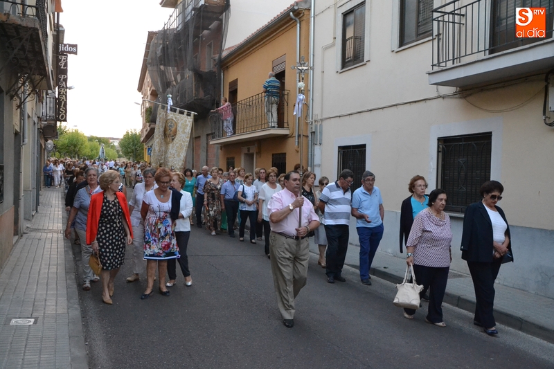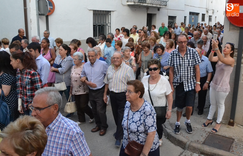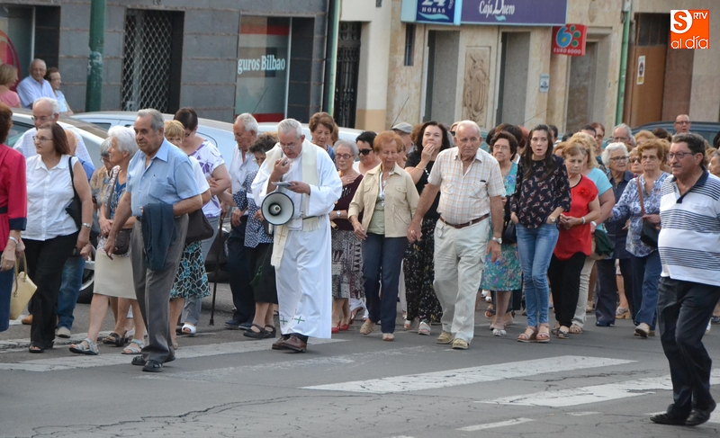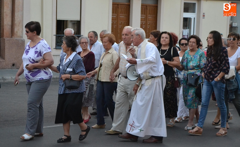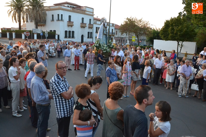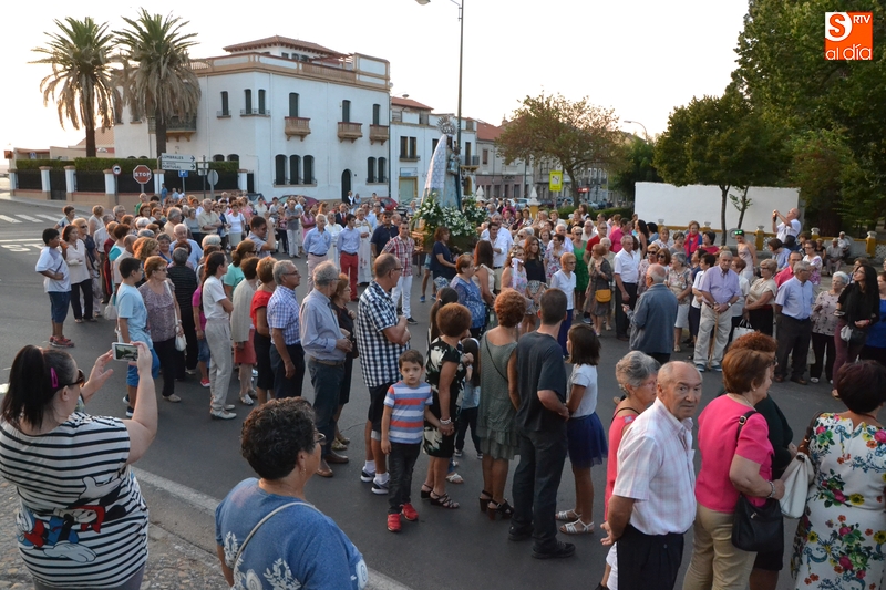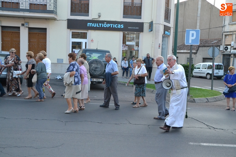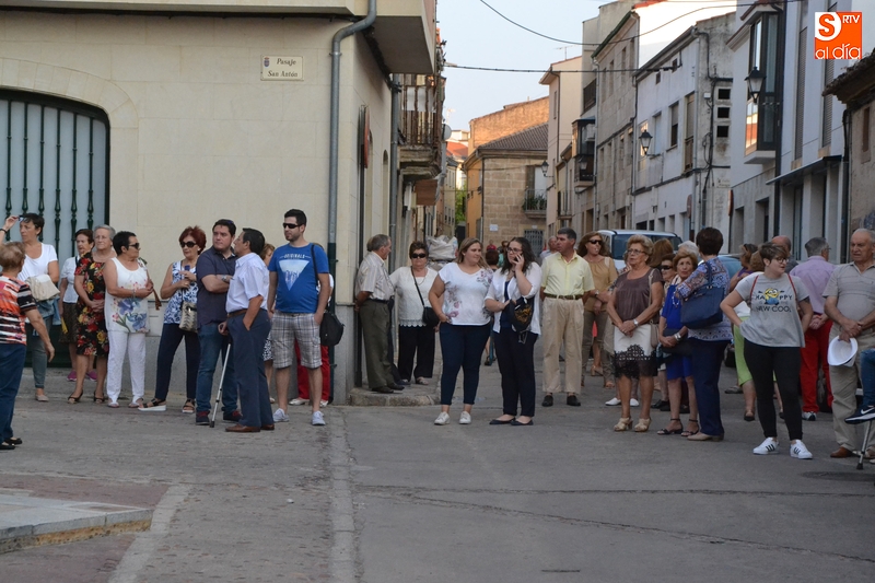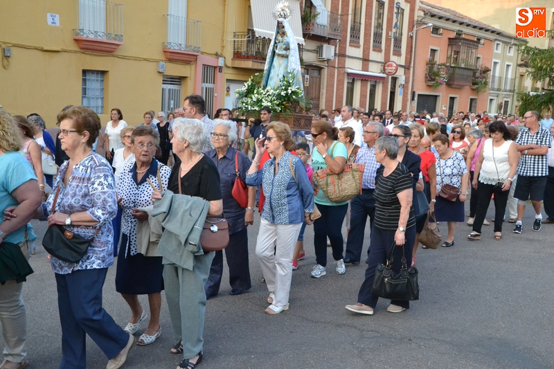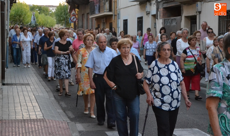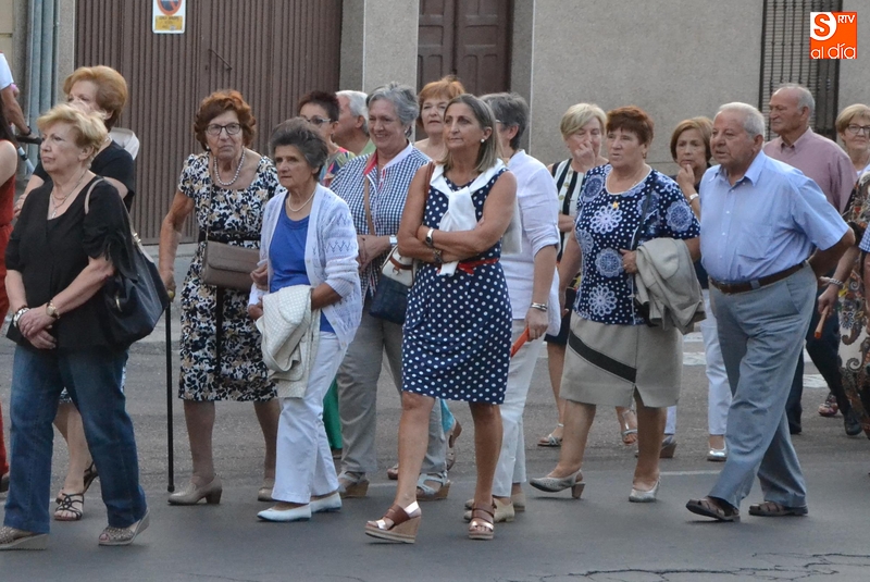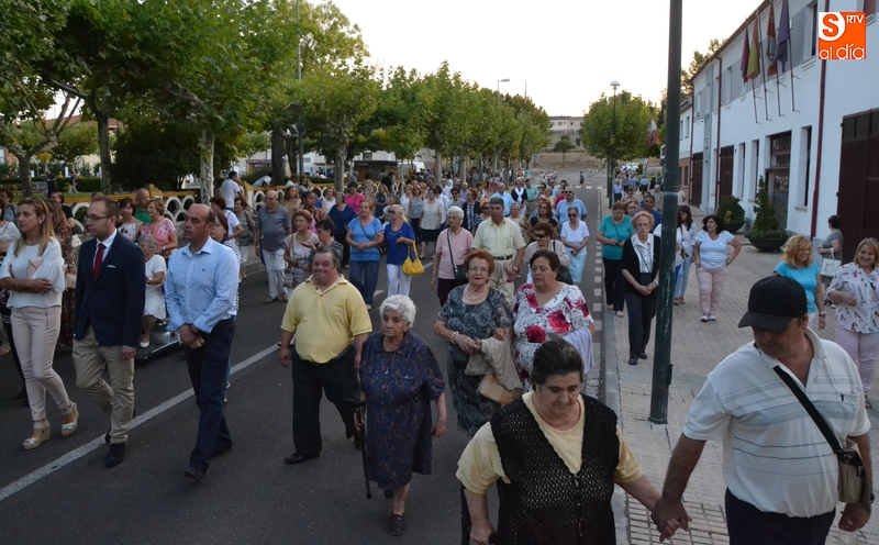 Aunque tuvieron algunos problemas de estabilidad al inicio de la procesión, fueron avanzando con la Virgen desde las puertas de la Iglesia por las calles San Antón y Canal hasta llegar a la Avenida de España, donde se vivió una situación bastante rocambolesca. Resulta que justo al ir a comenzar la procesión, uno de los agentes de la Policía Local se dirigió al párroco, Celso Martín Santos, para decirle que la procesión a su paso por la Avenida de España debía ocupar un único carril, en este caso el derecho en sentido ascendente.