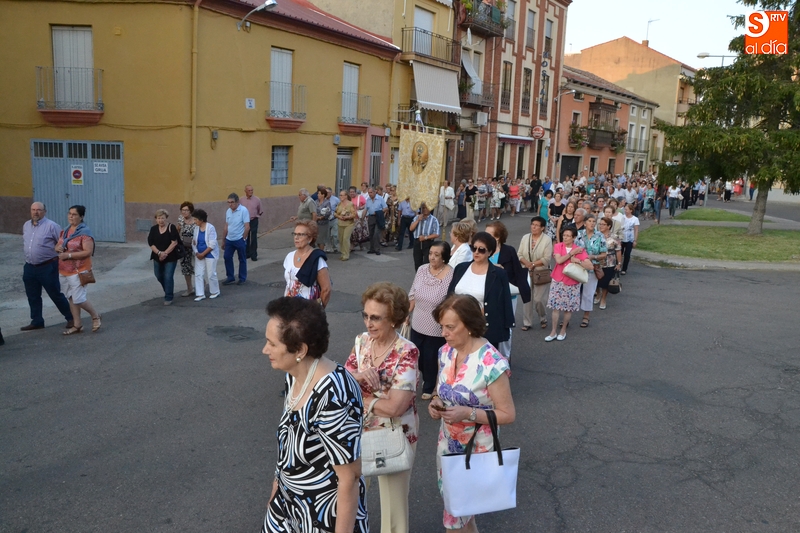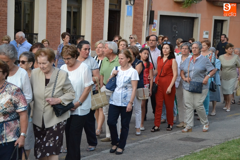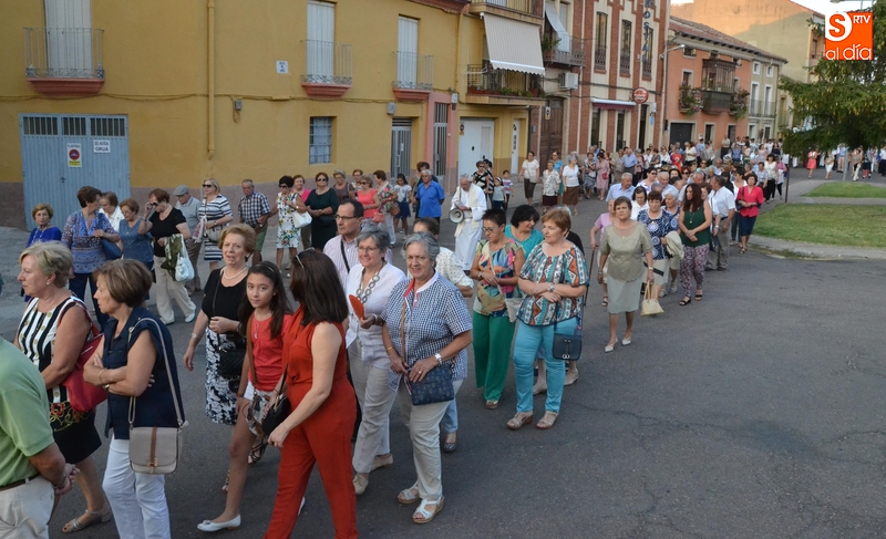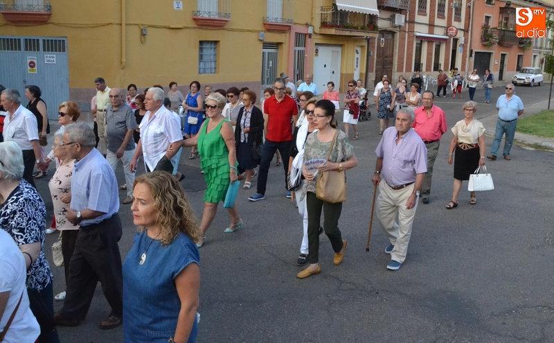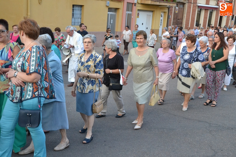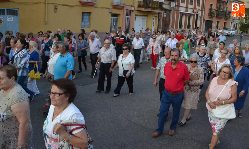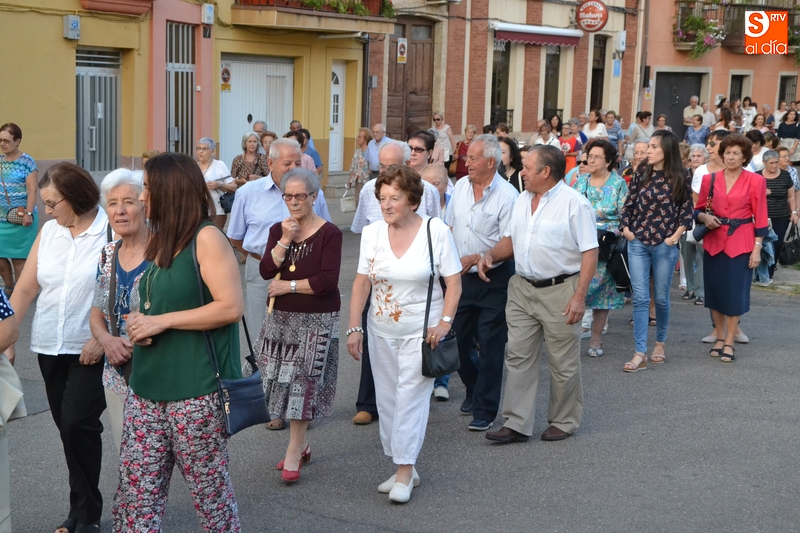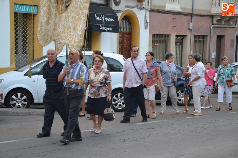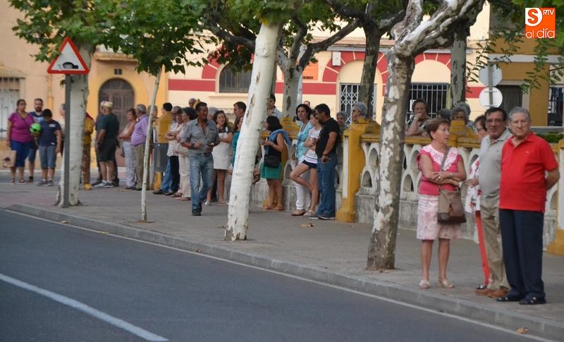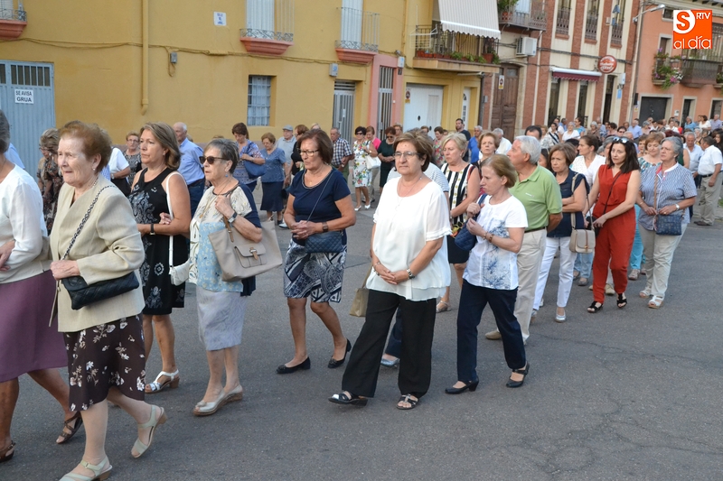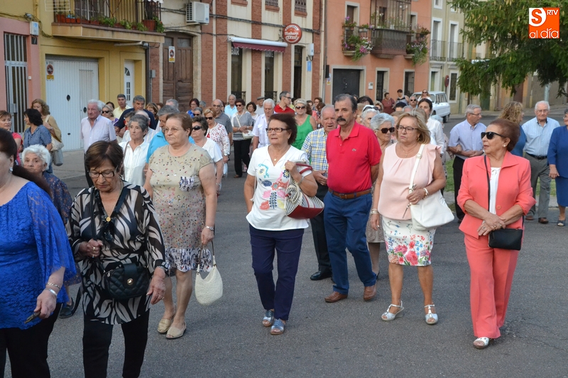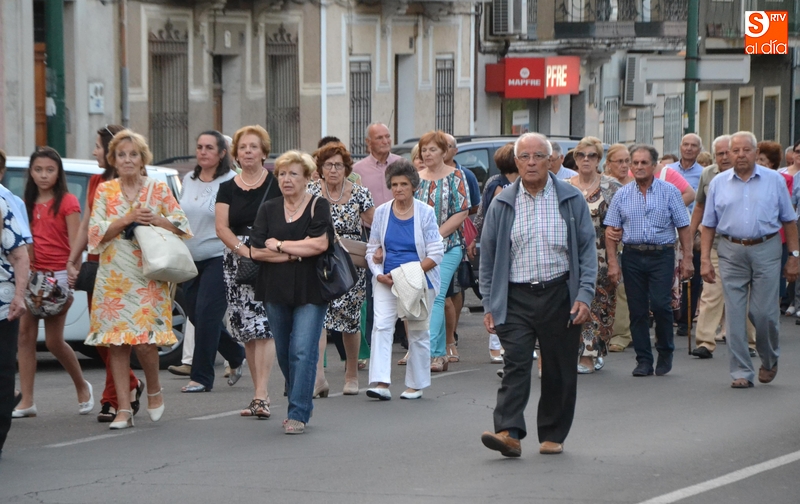 Aunque tuvieron algunos problemas de estabilidad al inicio de la procesión, fueron avanzando con la Virgen desde las puertas de la Iglesia por las calles San Antón y Canal hasta llegar a la Avenida de España, donde se vivió una situación bastante rocambolesca. Resulta que justo al ir a comenzar la procesión, uno de los agentes de la Policía Local se dirigió al párroco, Celso Martín Santos, para decirle que la procesión a su paso por la Avenida de España debía ocupar un único carril, en este caso el derecho en sentido ascendente.