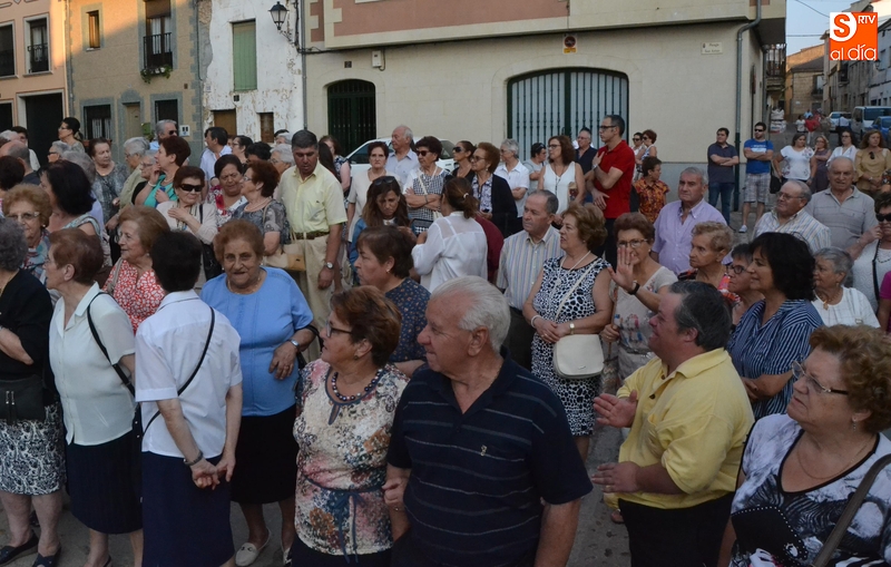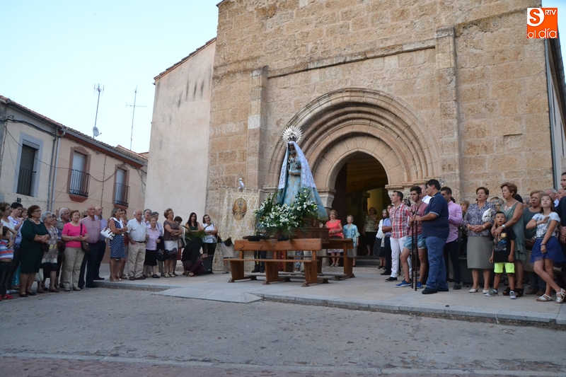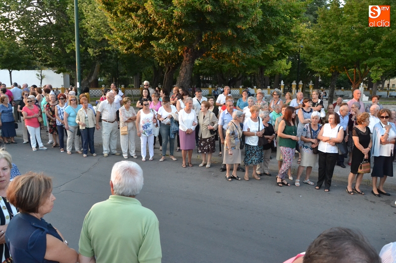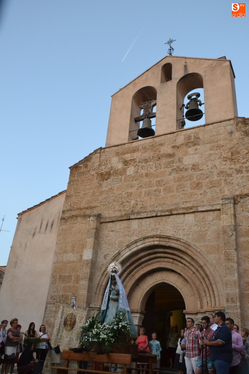 La comitiva continuó por la calle Santa Clara para tomar de nuevo la calle San Antón y llegar a las puertas de la Parroquia, donde se colocó la imagen de la Virgen sobre bancos para cantar la Salve y cerrar el acto, con unas palabras de Prudencio Manchado, quién dijo que "si estuviera nuestro Obispo diría: ¡Viva la Virgen de la Peña!".