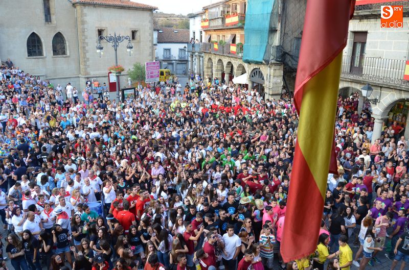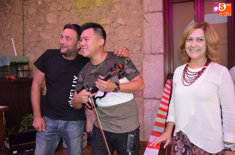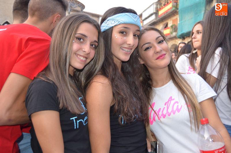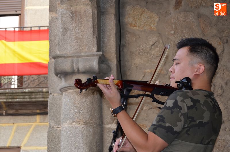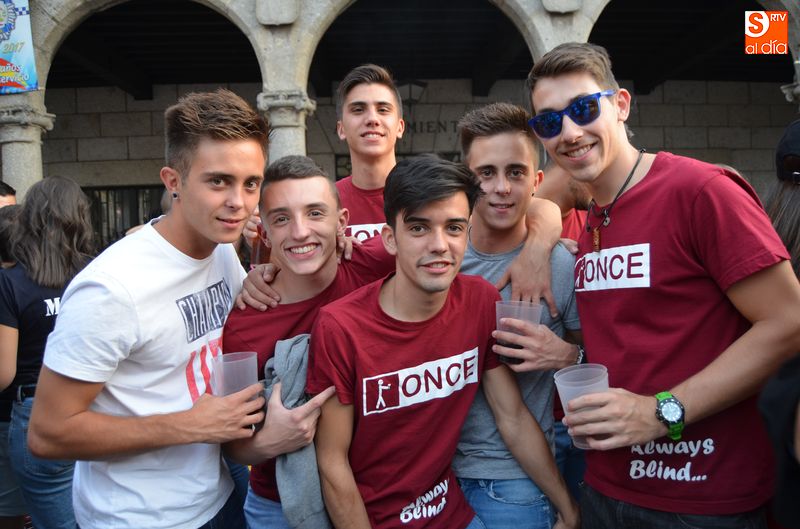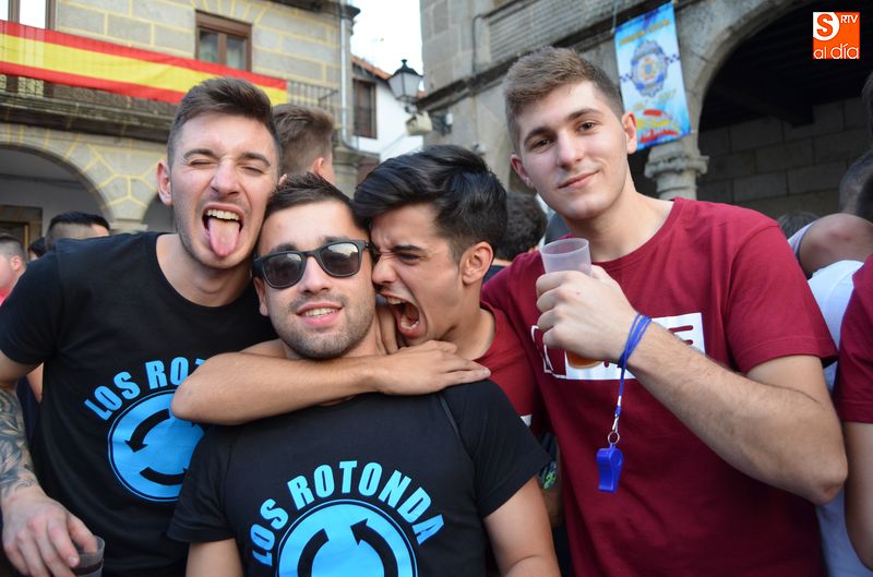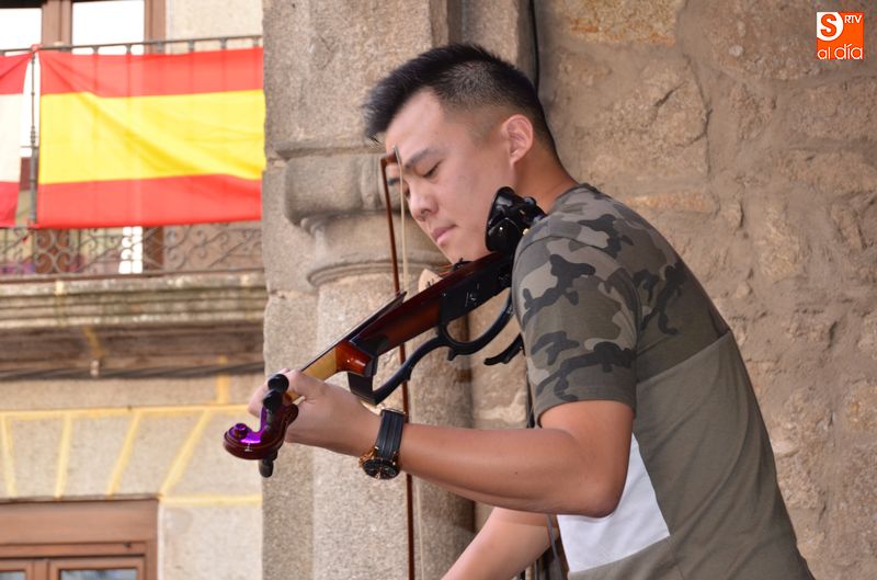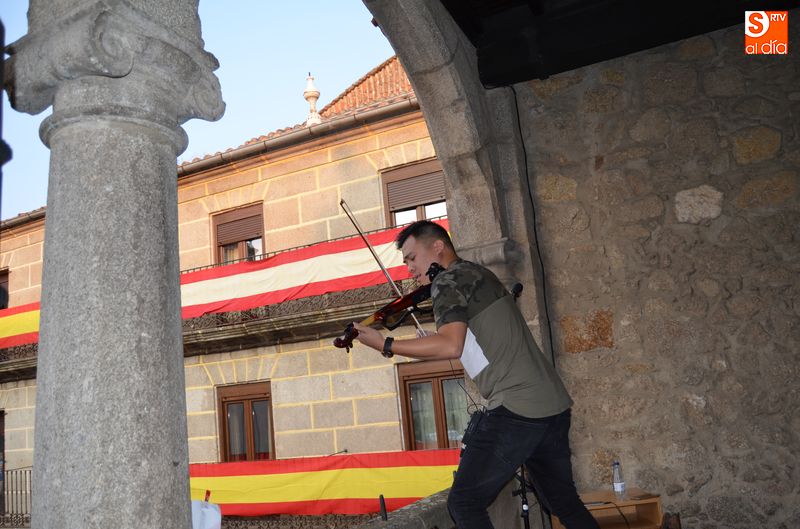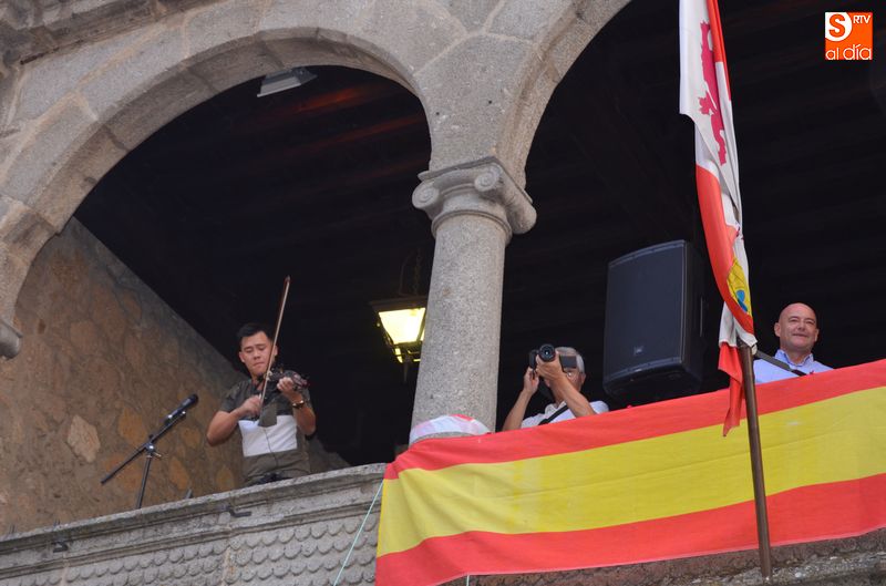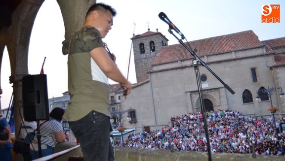 El concierto de Javi Lin, precediendo al pregón y al chupinazo, ha hecho bailar a todas las peñas reunidas en la Plaza Mayor, que tras un breve amago de parada en la salida de la Calle Mayor, para cumplir con la convocatoria hecha a través de las redes sociales, con el fin de manifestar el desacuerdo con que no se haya contado con la gente joven en la organización de las fiestas, ha terminado en pocos minutos al escuchar los primeros acordes del violín de Javi Lin. Un concierto de lujo para abrir el pregón de este año, con la Plaza Mayor a rebosar de gente para escuchar al violinista.