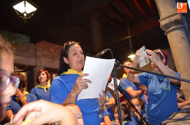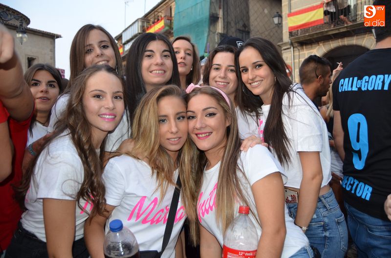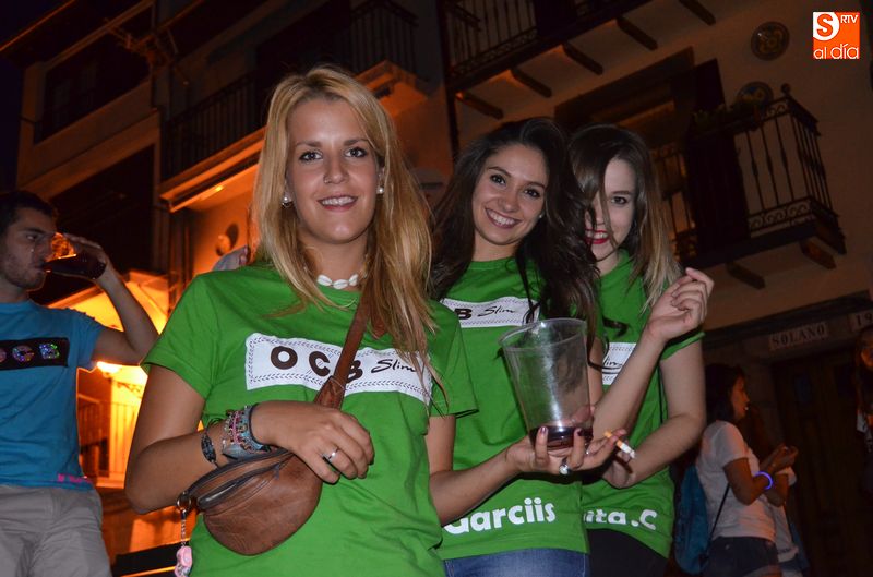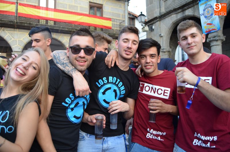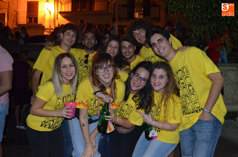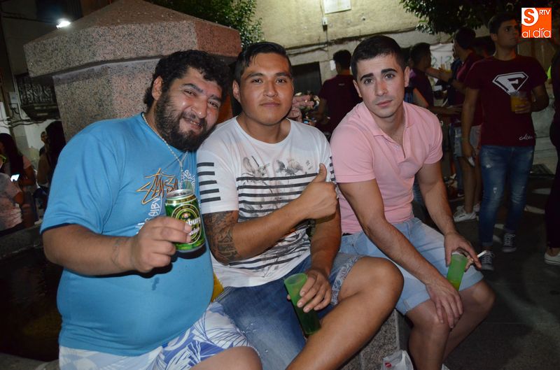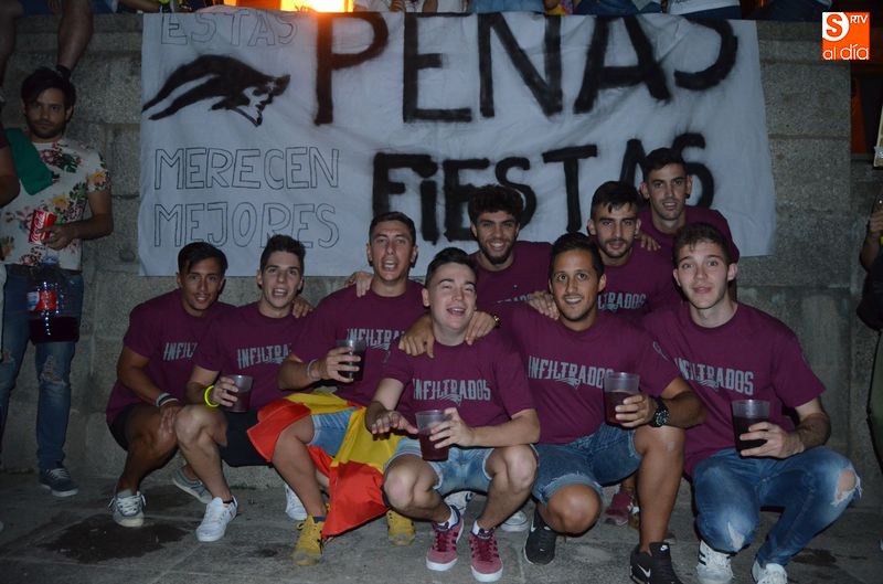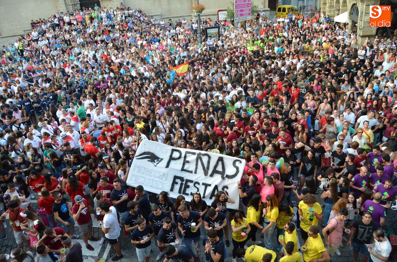 Uno de los miembros de la peña Infiltrados, también se ha dirigido a las peñas para invitarles a todos a una discoteca en la Plaza del Solano, donde las peñas se han reunido al finalizar el pregón, antes de dar comienzo al concierto en el Recinto Ferial.