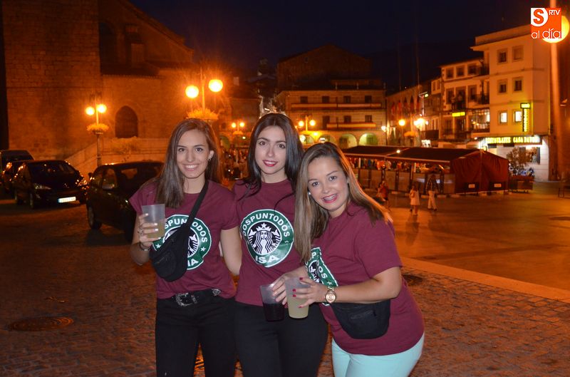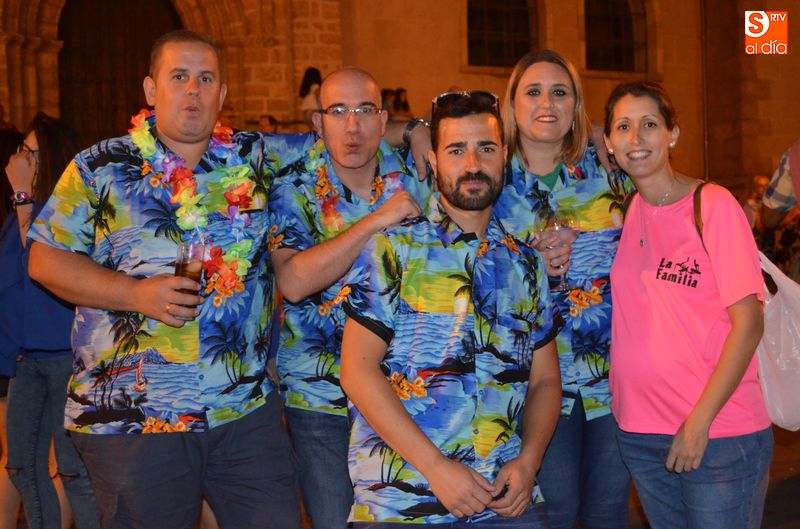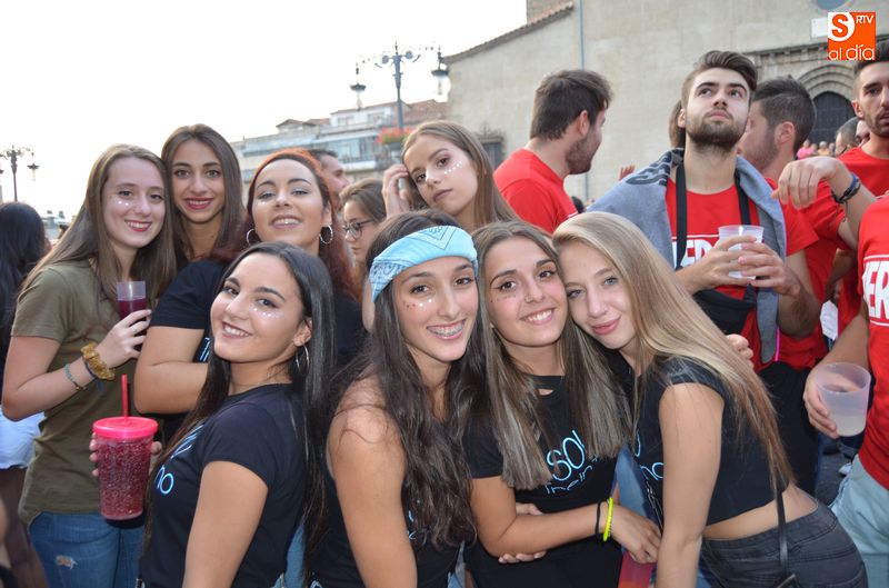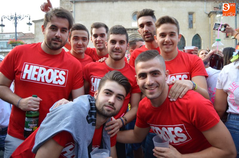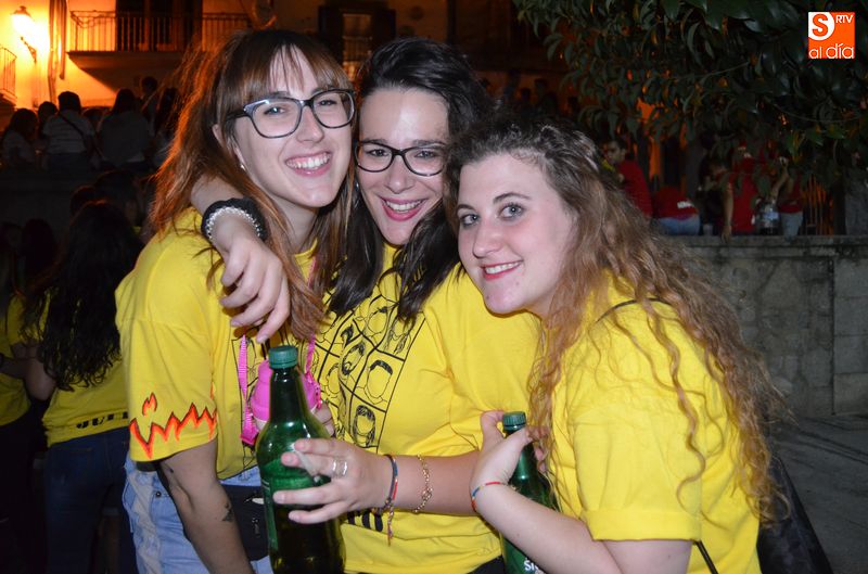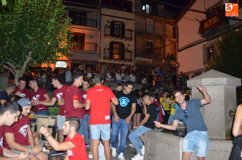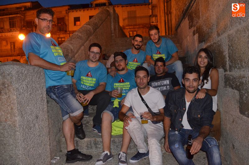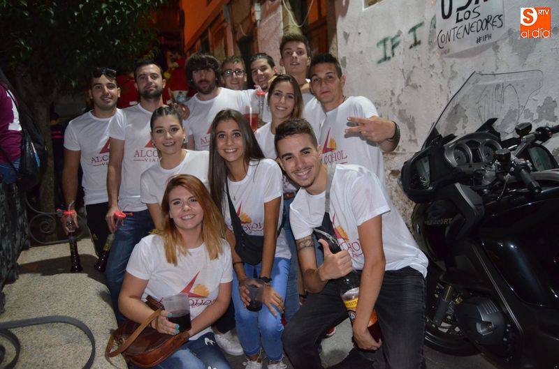 Uno de los miembros de la peña Infiltrados, también se ha dirigido a las peñas para invitarles a todos a una discoteca en la Plaza del Solano, donde las peñas se han reunido al finalizar el pregón, antes de dar comienzo al concierto en el Recinto Ferial.