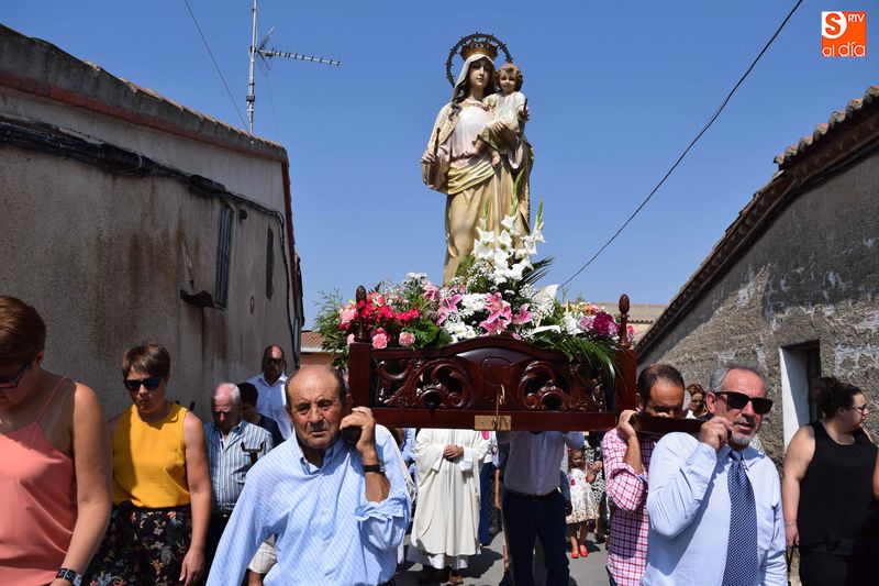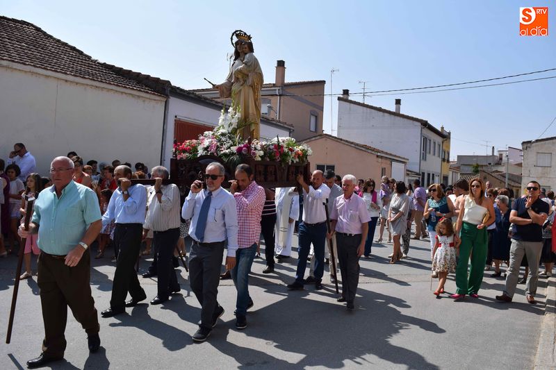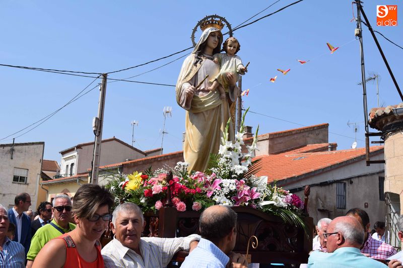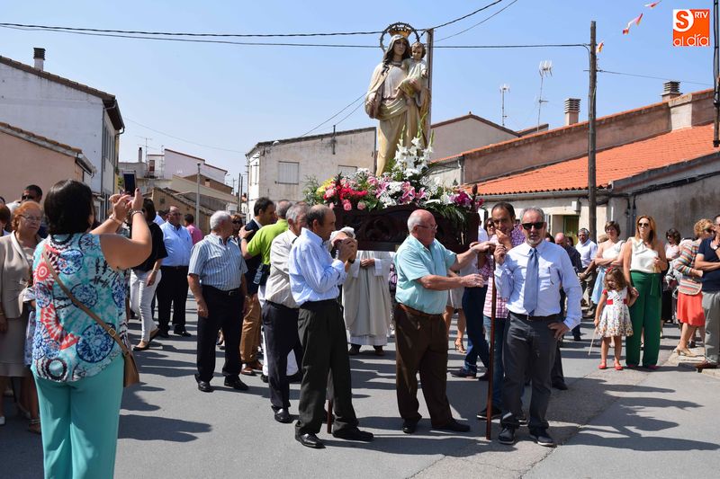 El municipio salmantino de Navales vive intensamente desde ayer jueves y hasta el próximo domingo sus fiestas patronales en honor a Nuestra Señora de Navales. A unos actos festivos que comenzaron ayer noche con el chupinazo inicial de fiestas y la tradicional ofrenda floral como eventos más destacados, se sumó hoy la salida en procesión de la imagen de Nuestra Señora de Navales por las calles del pueblo.