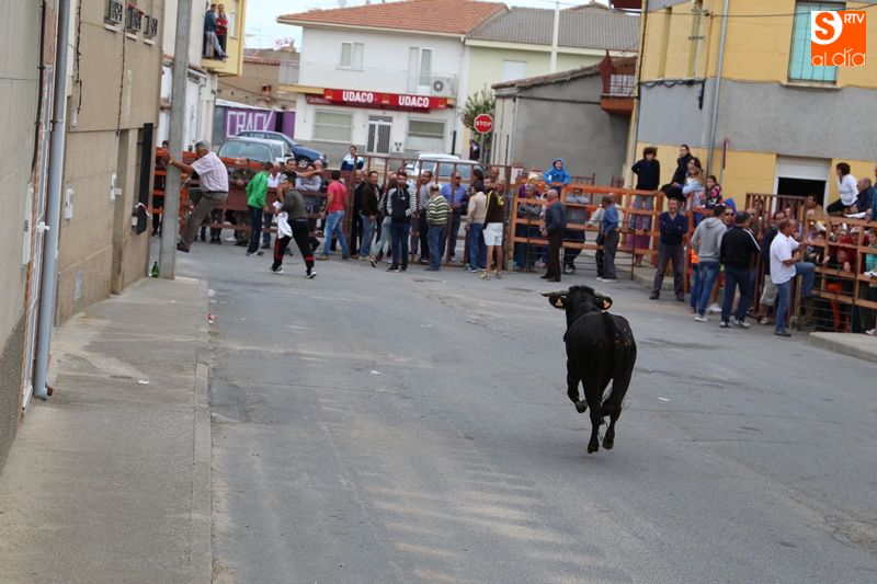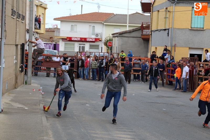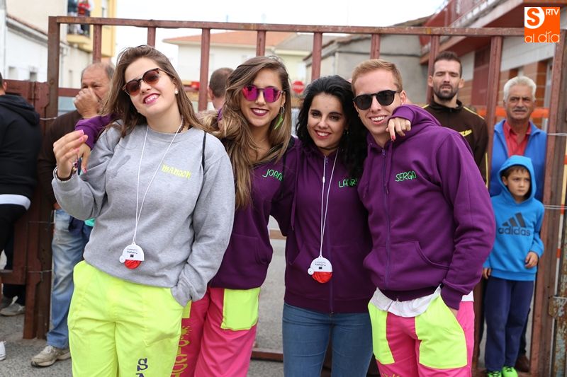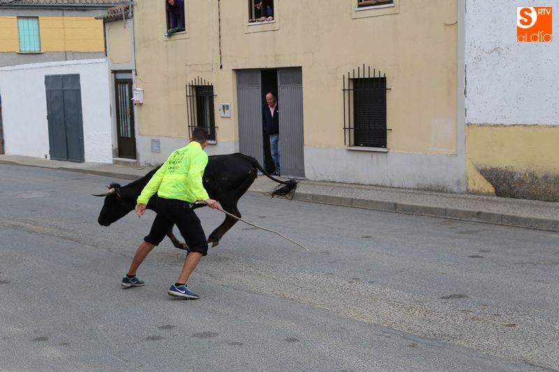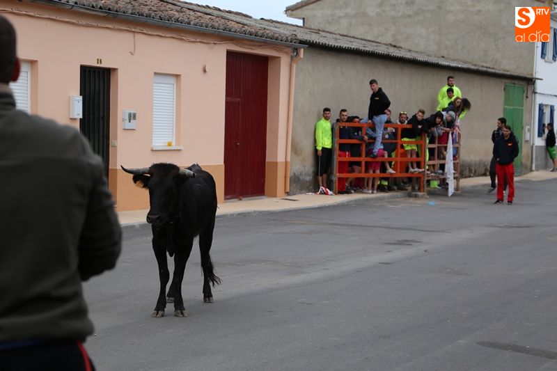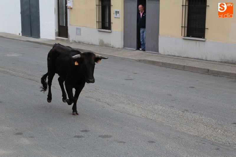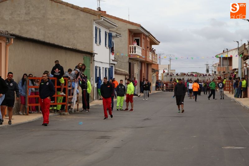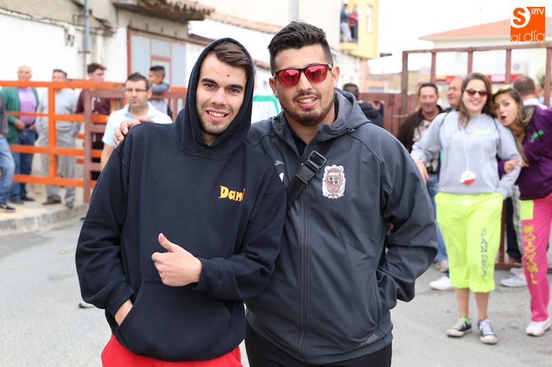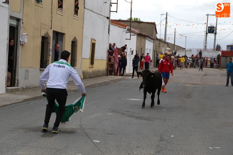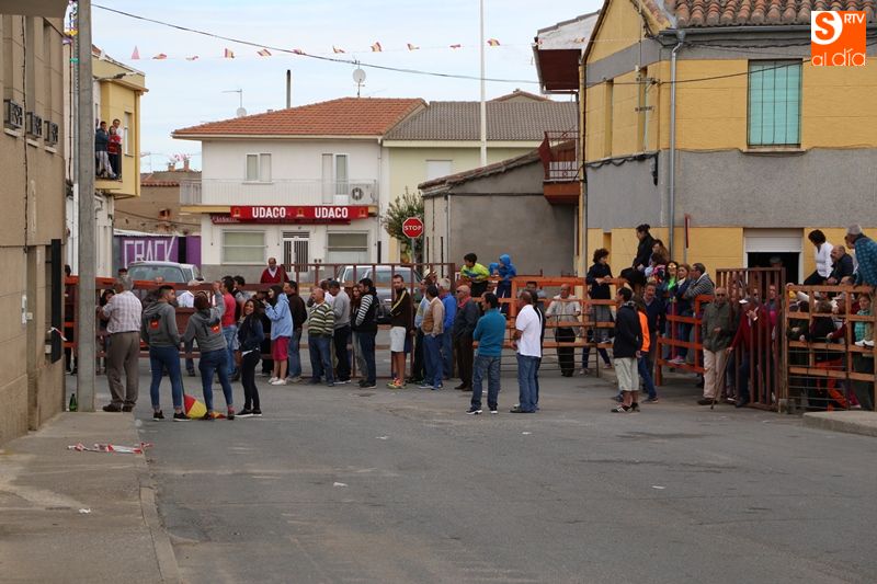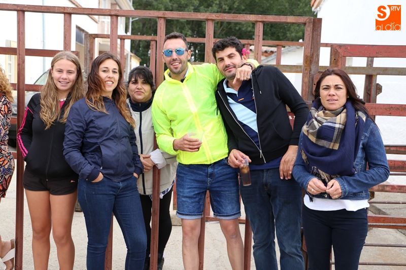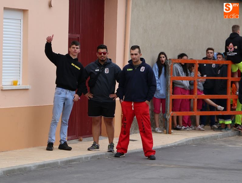 Los más valientes se arriesgaron recortando a la vaquilla, lo que le valió algún susto a más de uno. Una de las vaquillas logró colarse entre los barrotes de una de las talanqueras, de donde tuvo que ser sacada por los mozos.