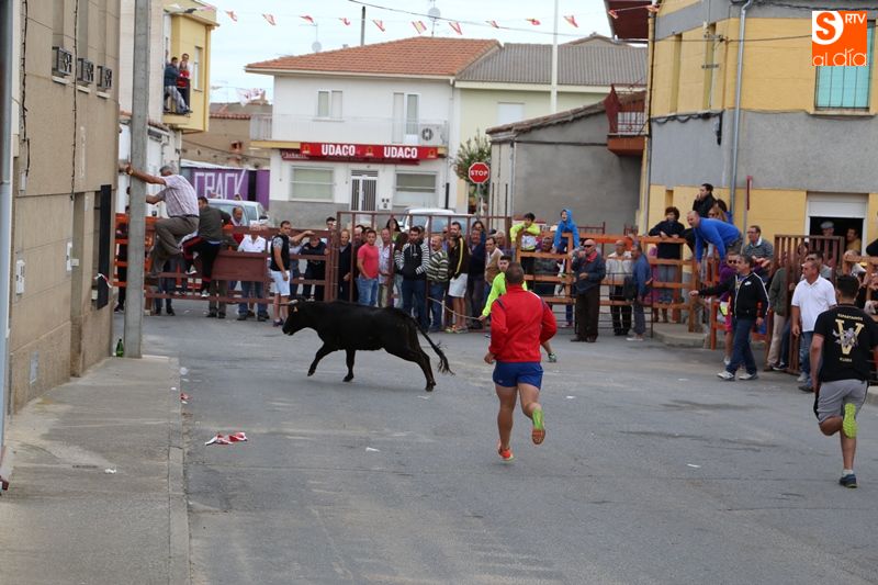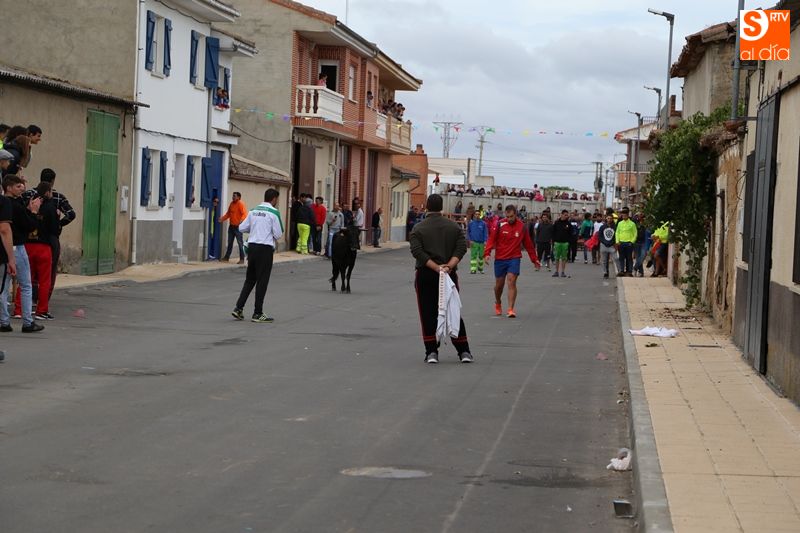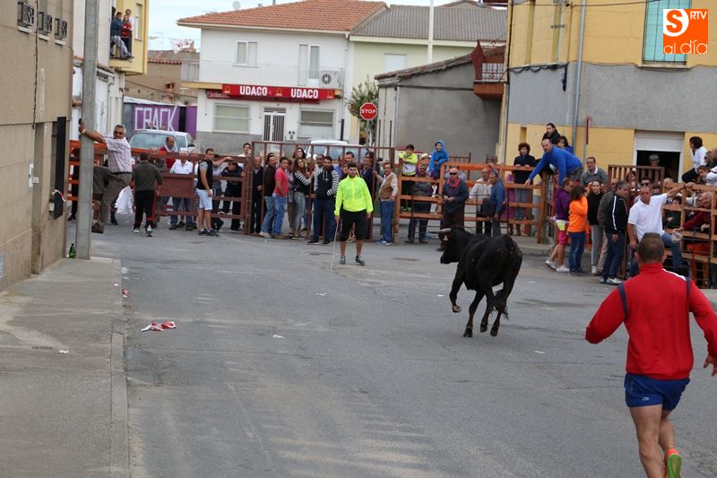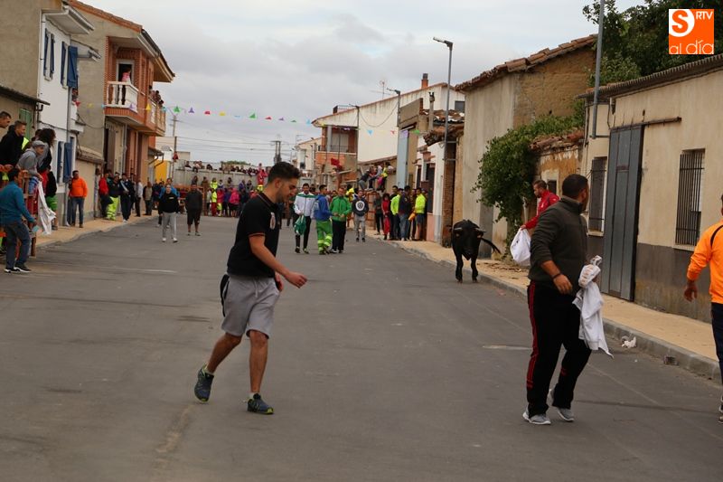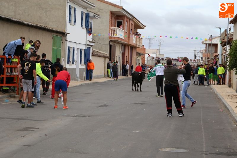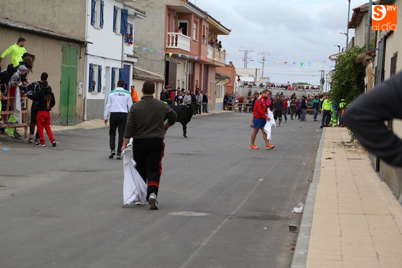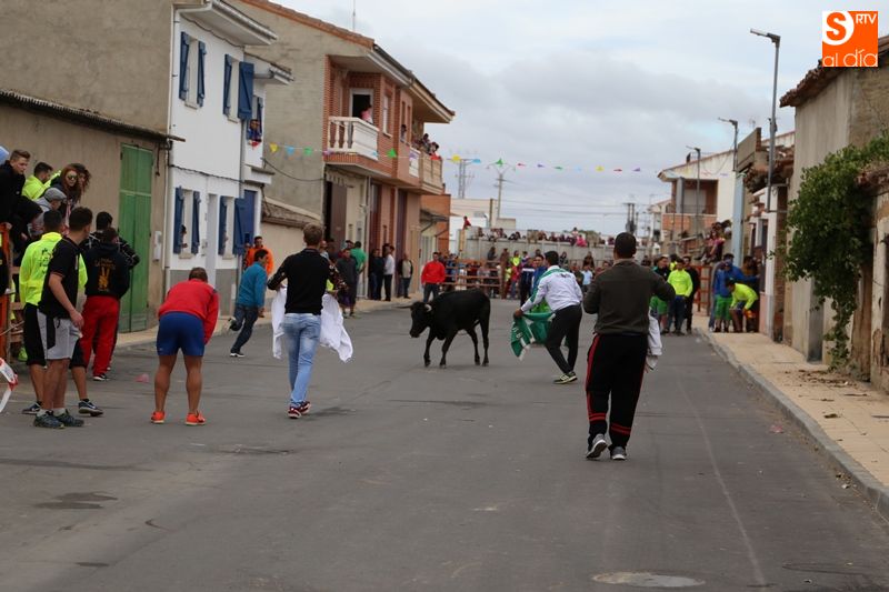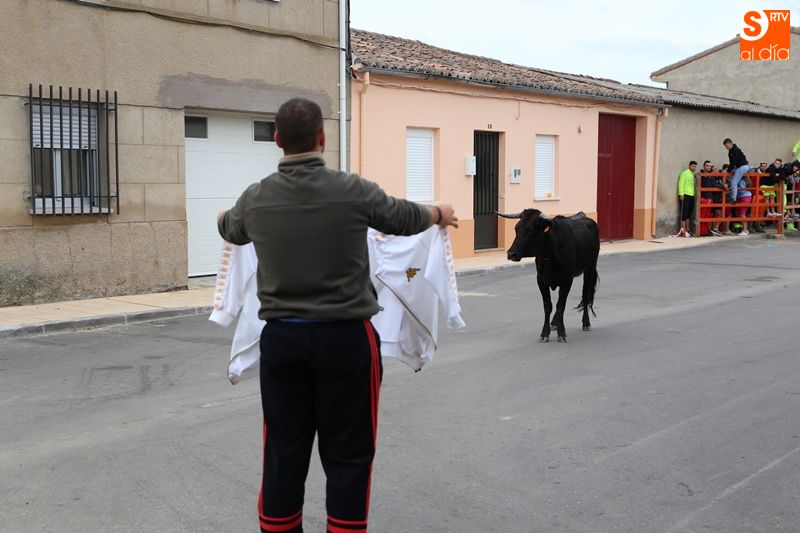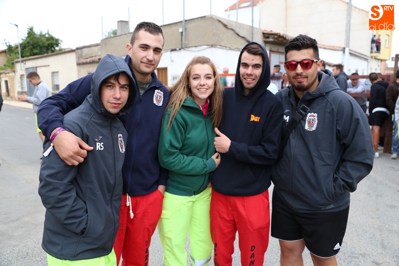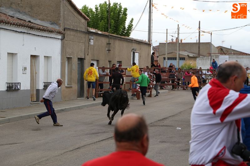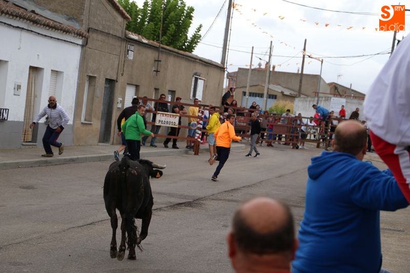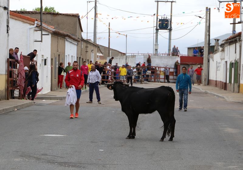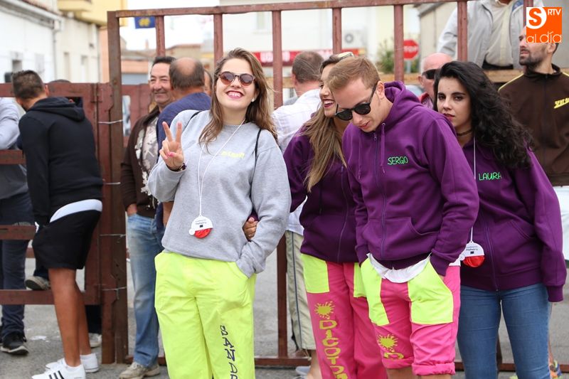 Los más valientes se arriesgaron recortando a la vaquilla, lo que le valió algún susto a más de uno. Una de las vaquillas logró colarse entre los barrotes de una de las talanqueras, de donde tuvo que ser sacada por los mozos.