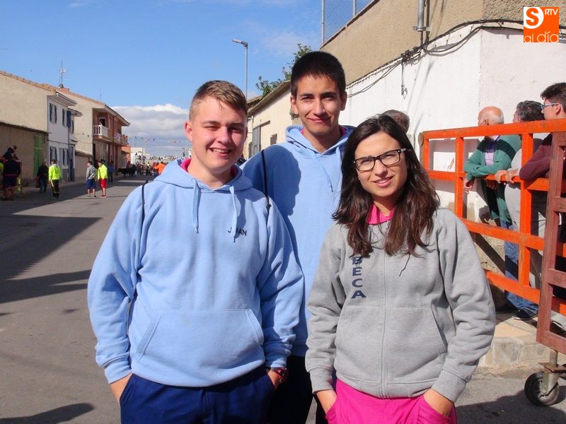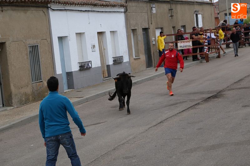 Para muchos jóvenes de Villoria, la mejor forma de quitarse el frío de la mañana y despejarse tras una noche de intensa fiesta, es correr en el encierro delante de las vaquillas, o detrás, dependiendo del arrojo de cada uno. Esta mañana se ha celebrado el segundo y último encierro urbano de las fiestas. Antes del festejo, en la Alameda fue repartido chocolate con churros.