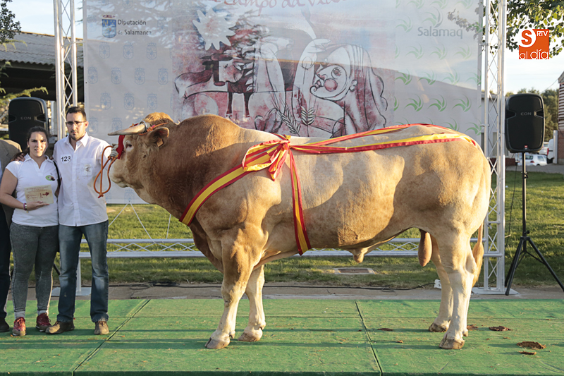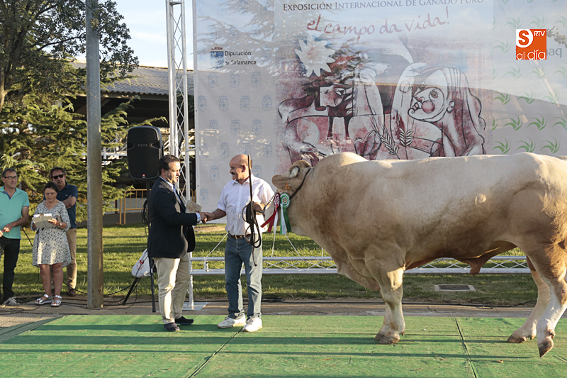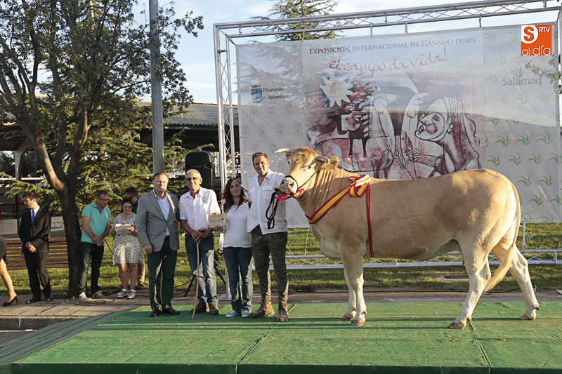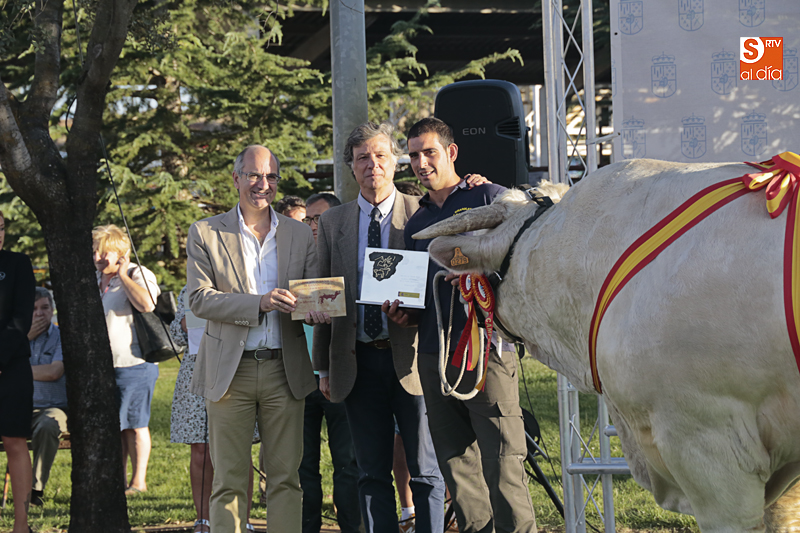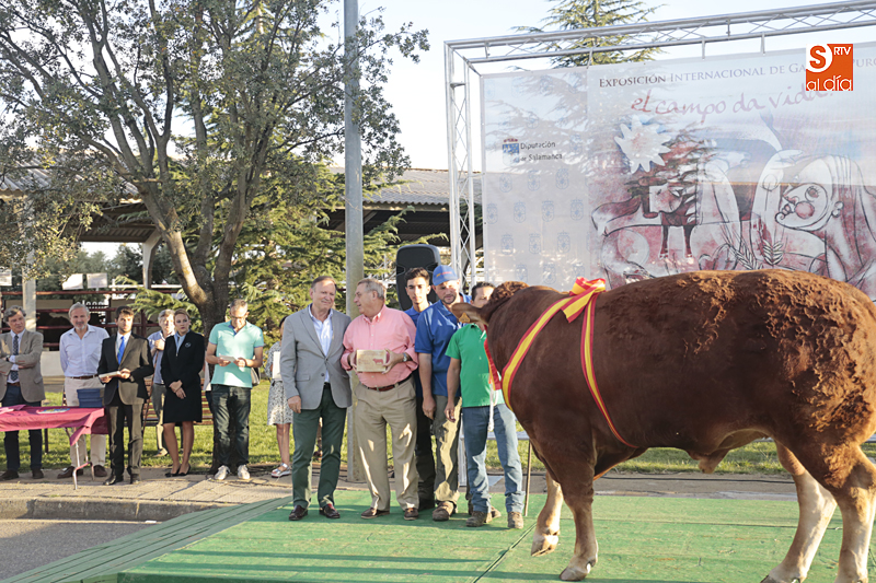 El mejor colofón a Salamaq, el reconocimiento a los ganaderos que este año se llevan a sus explotaciones los galardones como ganadores de los concursos morfológicos celebrados en el recinto ferial de Salamanca. El presidente de la Diputación, Javier Iglesias, ha participado en la entrega de los premios a los productores cuyos ejemplares han sido los mejores.