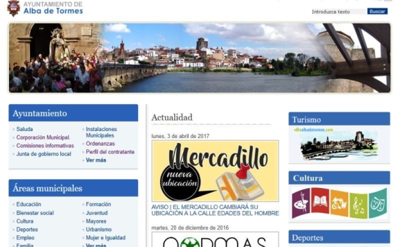 El cambio de ubicación del mercadillo, con fecha 3 de abril de 2017, es la última noticia recogida por el portal web oficial del Ayuntamiento de Alba de Tormes (www.albadetormes.com). Un portal complementario a villaalbadetormes.com, la web turística del Ayuntamiento que sí permanece actualizada.