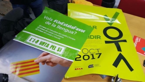 Efectivos de la Policía Judicial de la Guardia Civil se han incautado de 100.000 carteles de promoción del referéndum del 1 de octubre. La propaganda, que tiene el logotipo de la Generalitat, estaba oculta en una nave industrial del barrio de Poblenou, perteneciente a a la empresa Marc Martí, en la calle Pallars, según han revelado fuentes de la investigación.