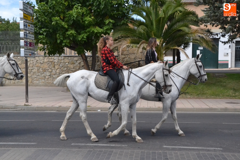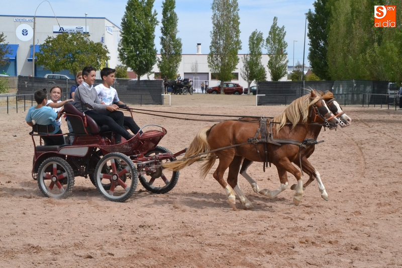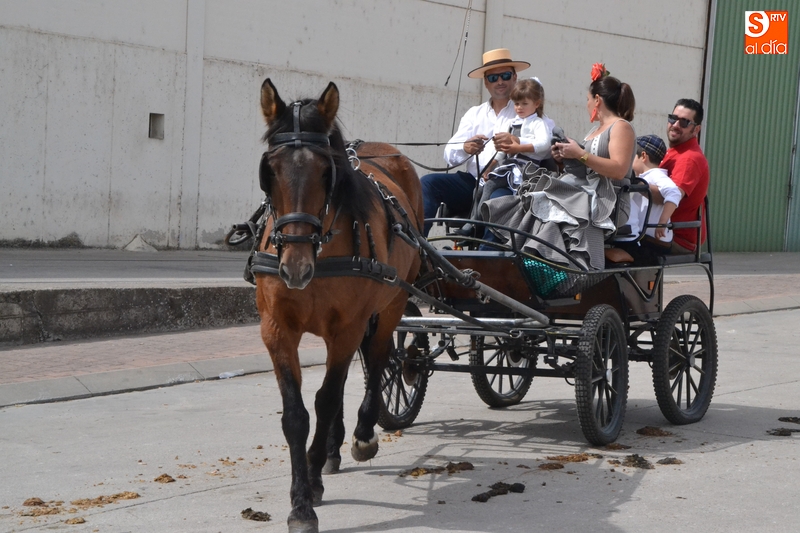 Tras esa larga velada, el Polígono de Los Chabarcones volvió a carburar de nuevo a media mañana del domingo, acercándose sobre todo familias a visitar los caballos o a tomar algo en la carpa. A lo largo de la mañana, hubo un trajín constante de caballos y calesas desde el recinto ferial hasta el centro histórico de la ciudad.