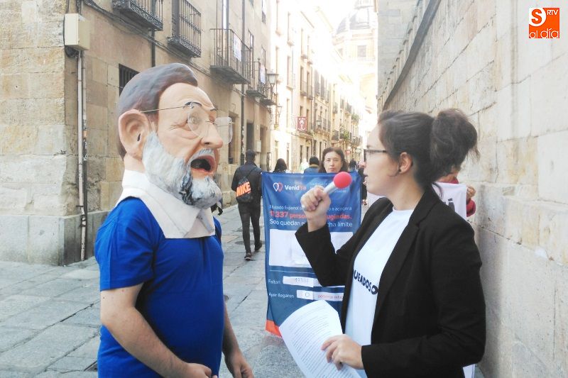 Un 'doble' del Presidente del Gobierno, Mariano Rajoy, ha visitado Salamanca este martes como parte del viaje simbólico que está recorriendo por toda España hasta completar los 5.053 kilómetros que equivalen a la distancia existente entre Damasco y Madrid.