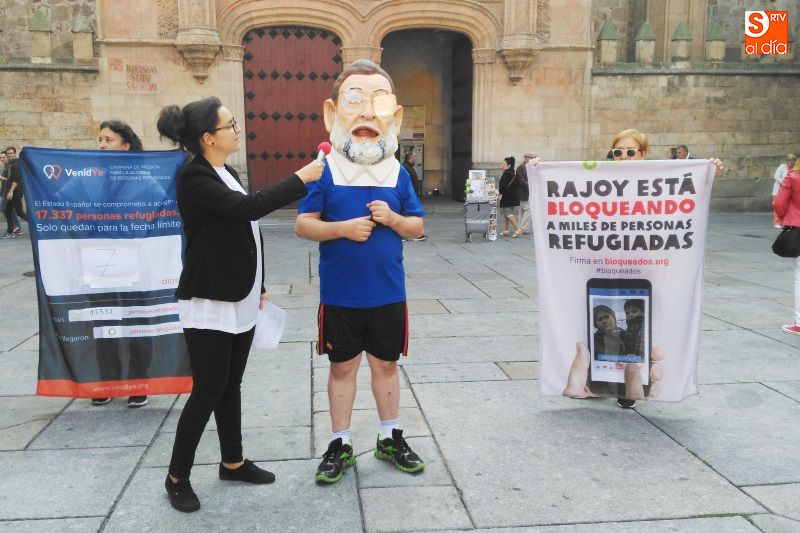Para recordarle al Gobierno su compromiso, el 'cabezudo' de Mariano Rajoy ha emprendido un viaje por España y los equipos de Oxfam Intermón están recogiendo firmas para presionar al Presidente. La organización ya ha conseguido más de 30.000 firmas y mantendrá esta petición hasta el 26 de septiembre, cuando expira el plazo del compromiso de acogida pactado con la UE.