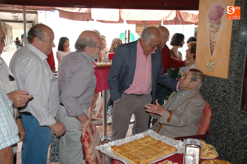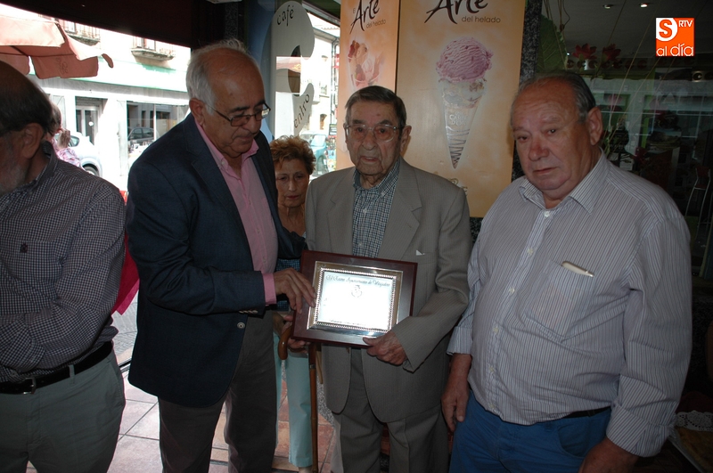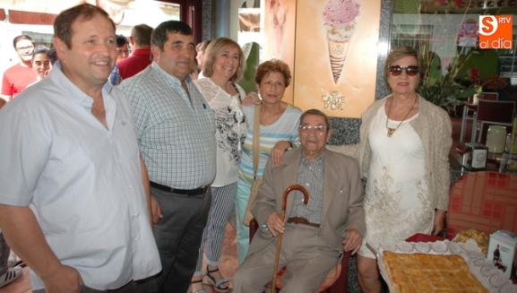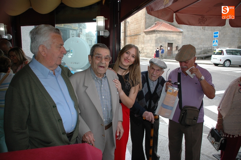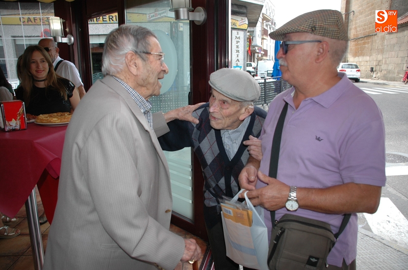 El acto tenía lugar en el Bar Centro con un ágape y junto a sus hijos, nietos y bisnietos. Además, el alcalde de Vitigudino, en nombre de la Corporación, le hacía entrega de una placa en reconocimiento a sus "méritos como excelente persona, primero, y después como empresario que ha sido de Vitigudino y que tanto ha hecho por nuestro pueblo. Siempre ha estado en lo que se le ha pedido, eres un ejemplo para todo nuestro pueblo", añadía el regidor.