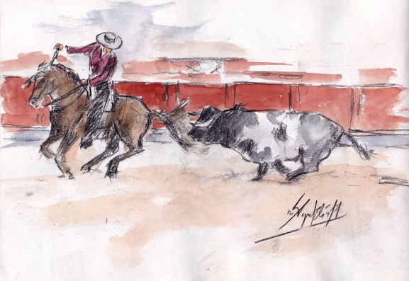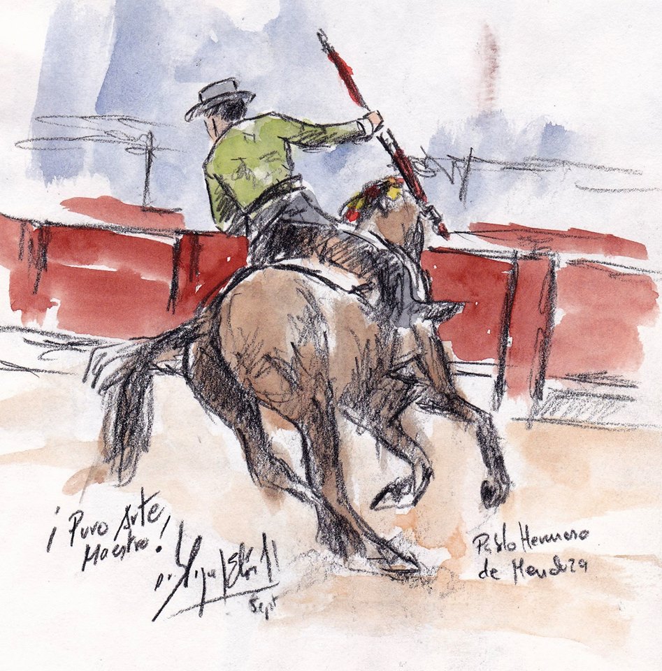 Dibujos de Miguel Elías en la corrida de rejones de Las Glorieta