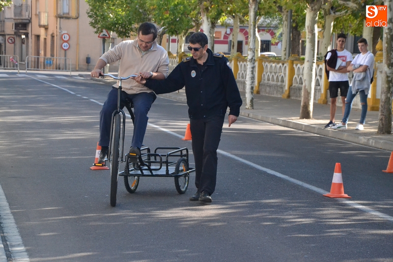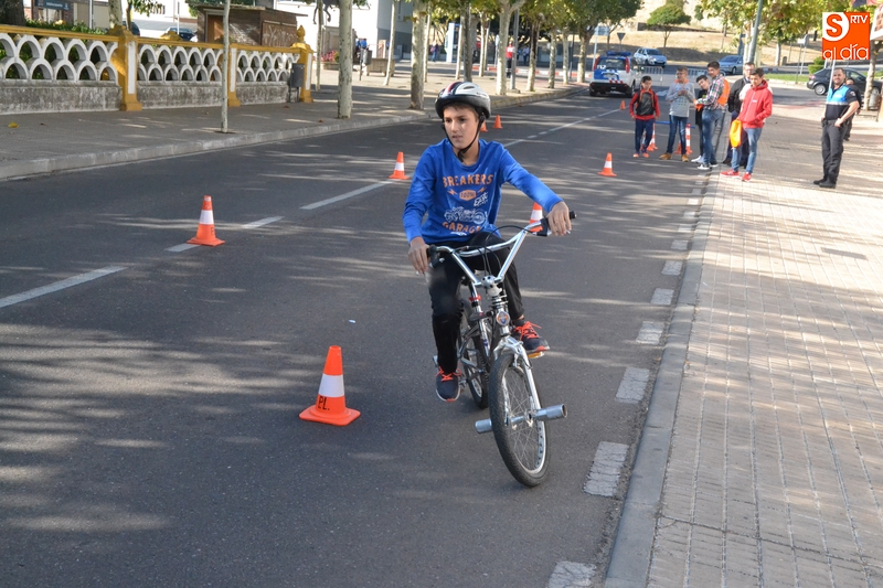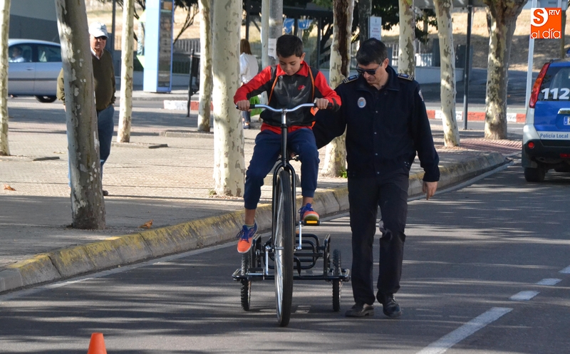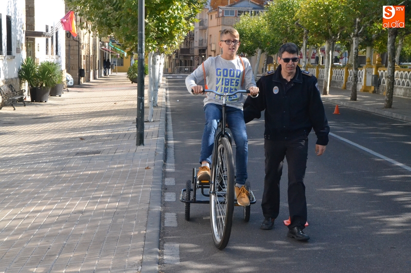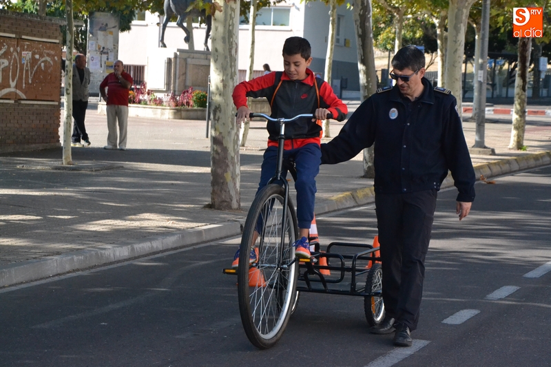 Concretamente, participaron en la actividad los alumnos de 5º y 6º de Primaria, y los de 1º de la ESO, quienes previamente a coger la bici recibieron una charla en la que conocieron cuáles son las maniobras que hay que hacer a la hora de circular o qué medidas de seguridad se deben adoptar.