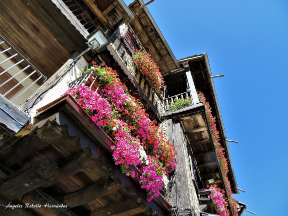 José Luis Puerto (Texto) / Ángeles Rebollo (Fotografía)(La provincia del alma).- Flores en las balconadas de la plaza de La Alberca