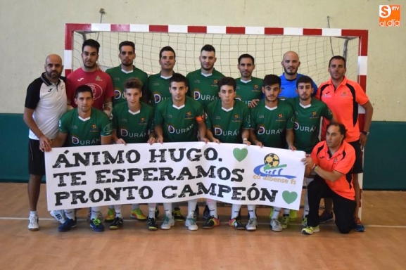 De la misma manera, toda la plantilla del Piensos Durán Albense, en nombre del club de la villa ducal, se ha sumado a las muestras de cariño y enviará a Hugo una camiseta firmada por todos los jugadores como muestra de apoyo y fuerza.