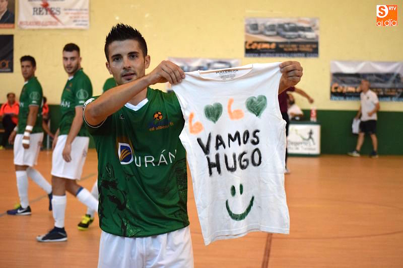 Sin embargo, no acabaron ahí las muestras de apoyo para el pequeño, y es que el capitán del Piensos Durán Albense, Óscar González, le tuvo presente en la dedicatoria de su gol, mostrando una camiseta con una dedicatoria que rezaba 'Vamos Hugo'.
