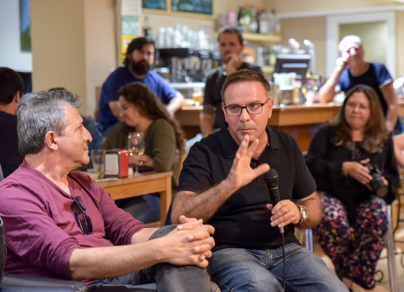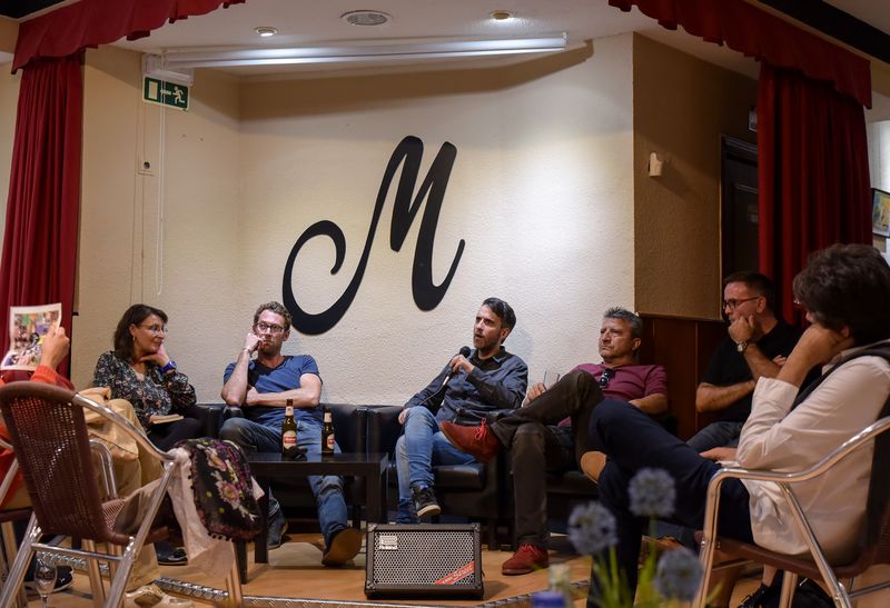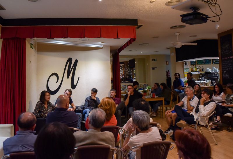 En este coloquio, en este diálogo en Manolita Café Bar, esta casa acogedora no hay final. La historia de Anselmo nos ha tocado muy hondo, ahí donde duelen los cambios, donde el dinero y quienes manejan verdaderamente el poder nos convierte en títeres. Ahí donde una mina pervierte en el campo la relación entre las gentes. Un paisaje de cielos armuñeses recorre la historia, el drama catártico urdido por Fede y Jonathan en esas conversaciones donde la historia toma forma. La forma de la presencia rotunda del actor Miguel Martín. Colores que recuerdan a Caravaggio, interiores de pintura flamenca. Un perro que se hace el muerto, consciente de que participa en esta película sublime.