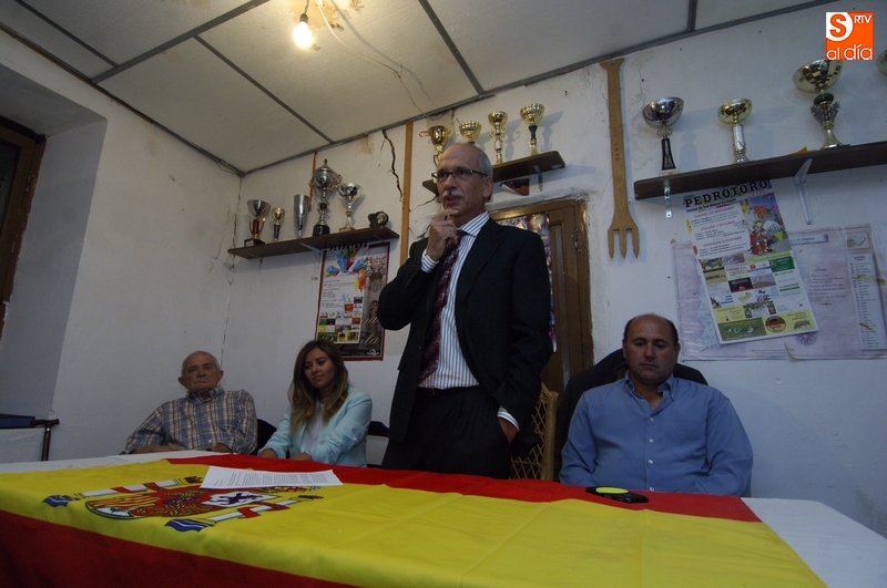 Jesús Alfonso Sánchez pregona las fiestas de Pedrotoro con referencias a la situación en... | Imagen 1Precisamente, el pregonero llegó a alabar el espíritu de los pueblos, comparándola con la situación que se está viviendo en Cataluña estos días. Desde su punto de vista, "no hace falta irse a Cataluña y separar, hace falta venir al pueblo de cada cual y unirse, justamente lo contrario de lo que estamos viviendo". Asimismo, también hizo mención al presidente de la Generalitat de Cataluña, Carles Puigdemont.