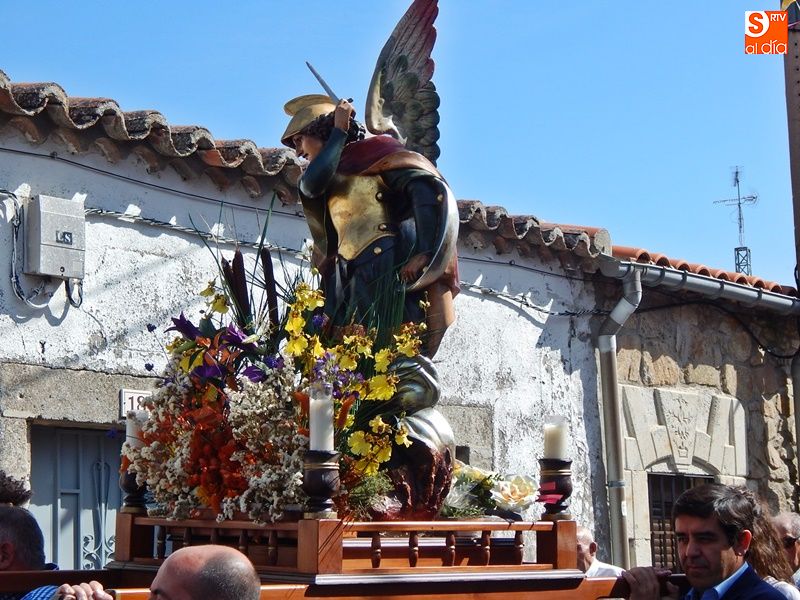 Tradición y bailes charros para honrar a San Miguel Arcángel, patrón de Juzbado, en el día grande de las fiestas del municipio. Al repique de las campanas, y tras la celebración de la misa, las puertas del templo se han abierto para dar paso a la imagen de San Miguel que, portada por los vecinos, ha recorrido las calles. Varias paradas a lo largo del recorrido de la procesión charra bailada por la Asociación de Mujeres de Juzbado.
