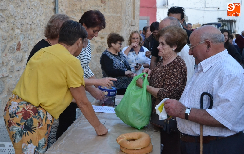 Como es tradición, se establecieron dos puntos de venta de las roscas, en ambos casos a 0,75 céntimos la unidad. Por un lado, las personas que habían asistido a la eucaristía y a la sesión de la novena tuvieron la oportunidad de comprarlas en el interior del templo, saliendo por la puerta lateral.