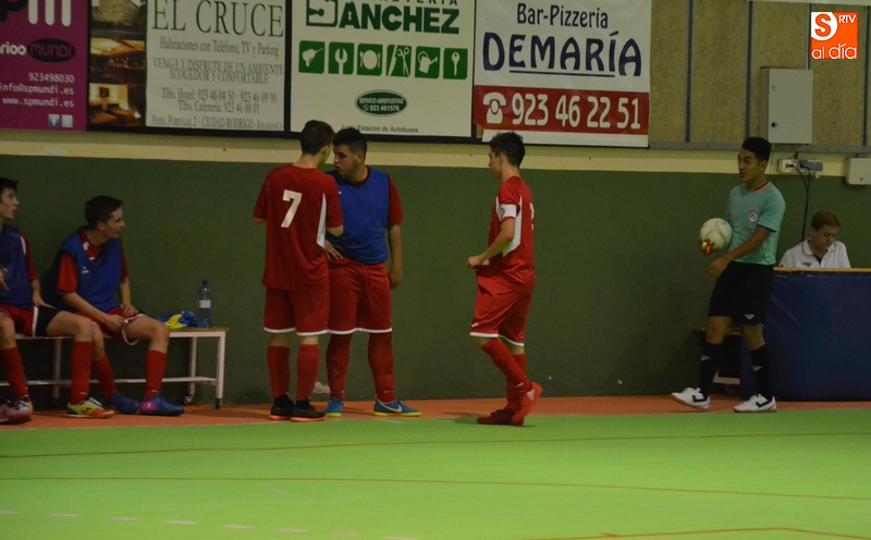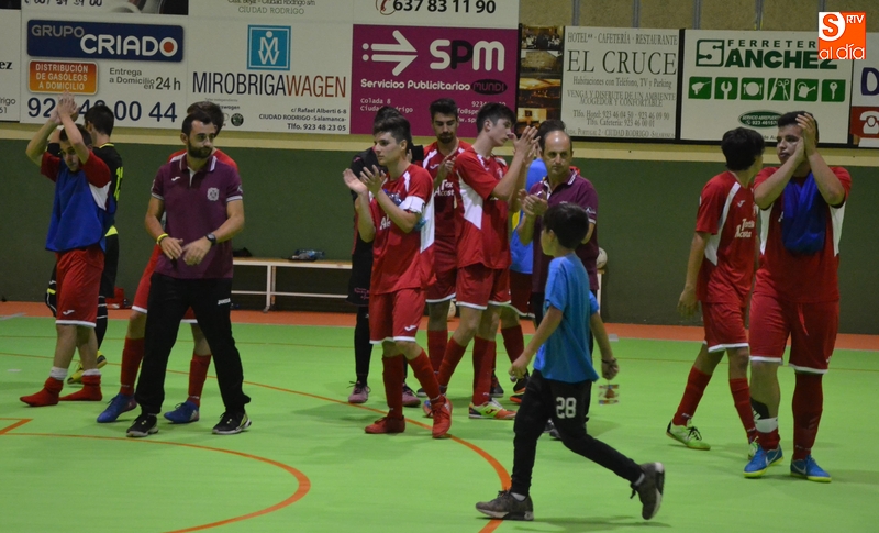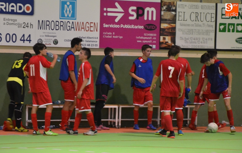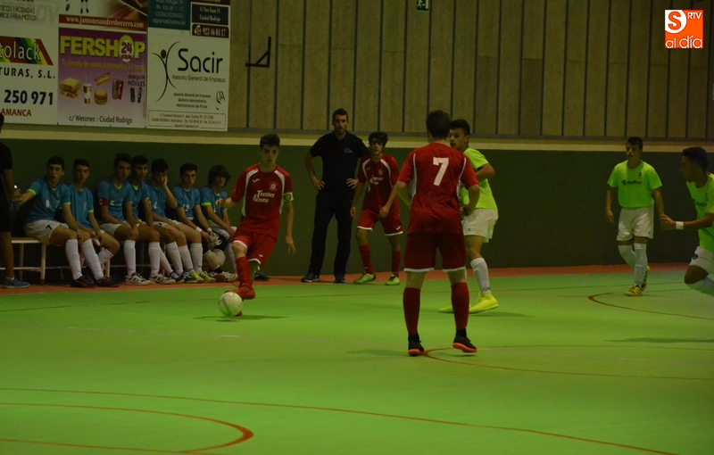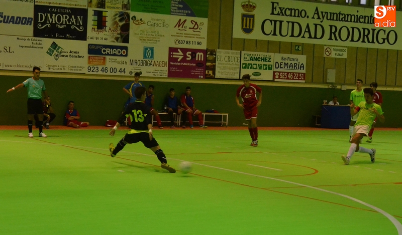 Los mirobrigenses tenían las bajas por lesión de dos jugadores importantes como Corvo y Miguel, pero pese a ello arrancaron muy bien, dominando de salida, lo que se tradujo en un madrugador gol de Álvaro en el 2'. Las ocasiones continuaron hasta que en el 7' les empataron al pecar de pardillos en una falta señalada por el colegiado a favor del FS Salamanca. Éstos no pidieron barrera, pero los mirobrigenses se fueron a colocar en la misma, viendo los locales el camino libre para resolver en el 2º palo.