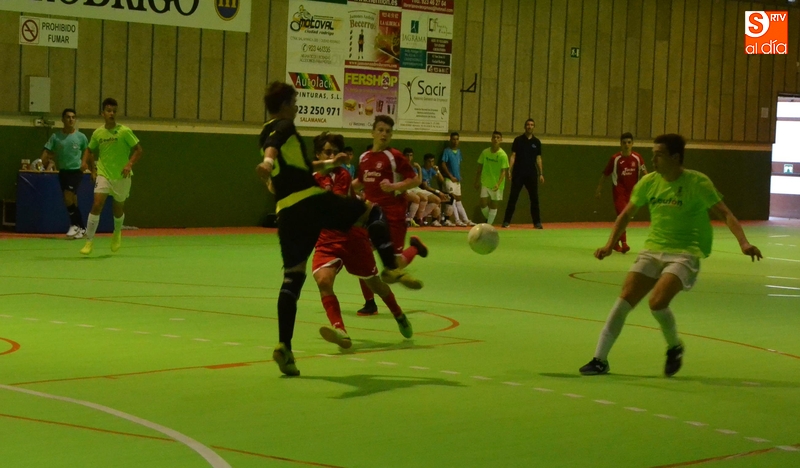 Lo que quedaba de primera parte fue de idas y venidas. En el 11', a Marc se le fue un balón alto; en el 13', los locales tuvieron su primera ocasión clara repeliéndola Jorge, que acto seguido metió una gran mano para mandar a córner el tiro posterior; en el 15', Asier rozó el 0-2 pero al portero le dio tiempo a levantarse tras el regate que le había hecho el jugador mirobrigense; en el 16', lo probó David sin suerte; en el 17', Jorge hizo dos paradas providenciales; y cuando apenas quedaban 4 segundos para el descanso, el FS Salamanca lo probó desde su casa, estando a punto de encontrar premio, ya que el balón dio en el larguero.