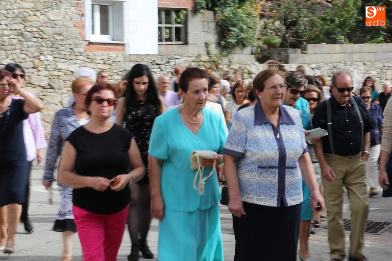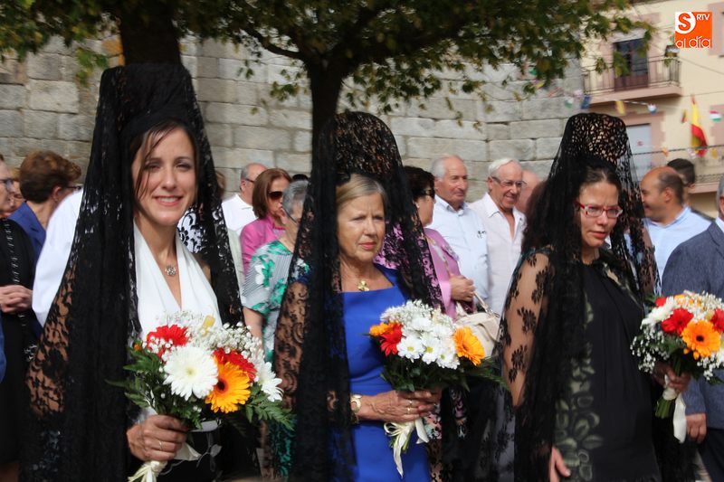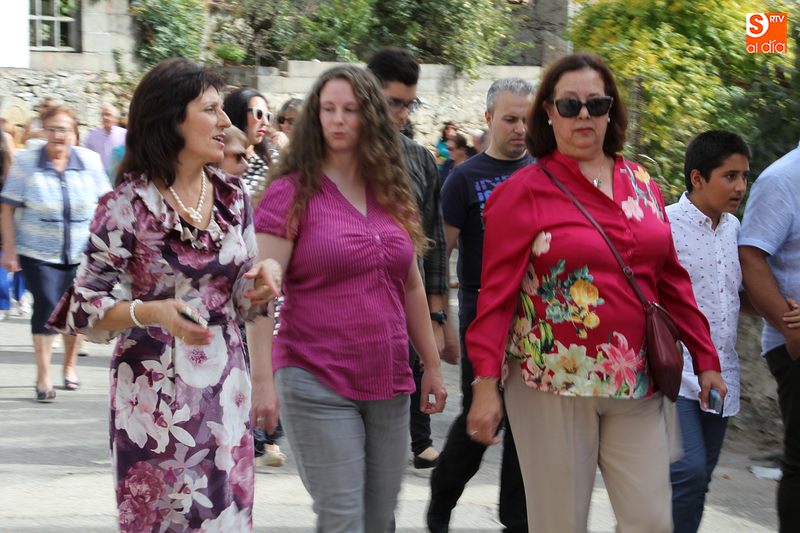 Ya en la tarde tendría lugar el rosario, pero antes con el pasacalles de madrinas y cuartilleras camino de la iglesia. Así, Teresa de Jesús Pérez y sus hijas Teresa y Carolina González realizaban sus ofrendas a la Virgen Rosario antes de la salida en procesión por las calles del pueblo.