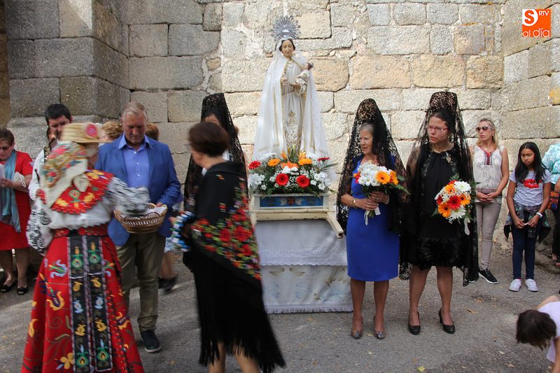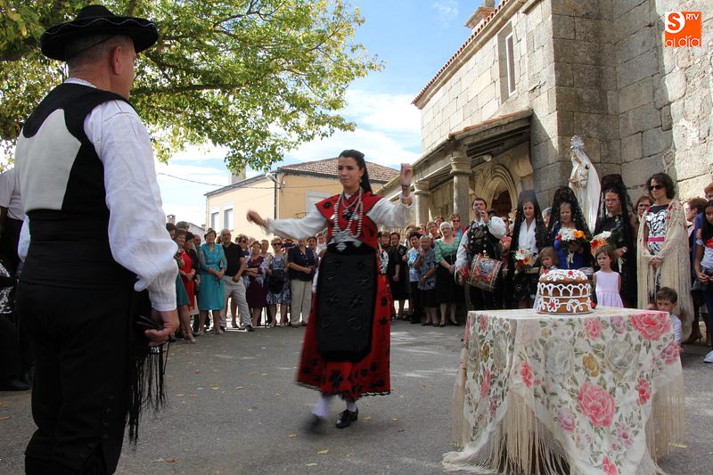 Finalizada la precesión se celebraría el ofertorio y, a continuación Ismael 'El Gallo' de Fermoselle' y Yésica de Villamayor interpretaban de manera magistral el baile de la rosca entonado por El Mariquelo, un momento que pondría fin a los religiosos en honor a la Patrona y que daría paso a dos emocionantes partidos de pelota a mano.