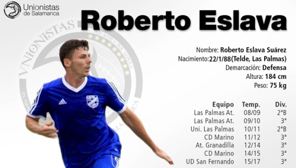 Unionistas de Salamanca se hace con los servicios de Roberto Eslava Suárez hasta el final de la presente temporada. El jugador llega procedente del San Fernando y se incorporará a la disciplina del primer equipo.