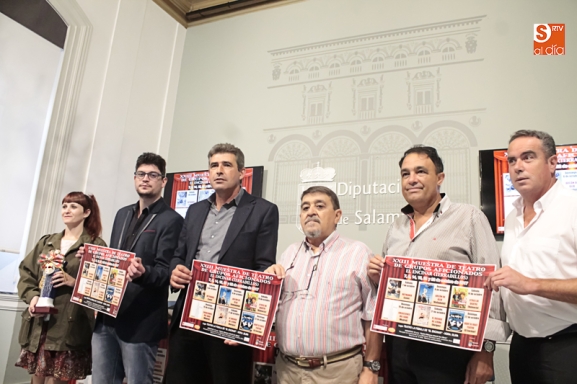 El diputado de Cultura, Julián Barrera, el alcalde de Terradillos, Alejandro Álvarez, y representantes de la Asociación Cultural "Aquí se hace teatro", Javier Bueno y José Riesco, presentan la XXIII Feria de Teatro de Terradillos, que se celebrará en la sala La Fábula de El Encinar del 7 al 22 de octubre.