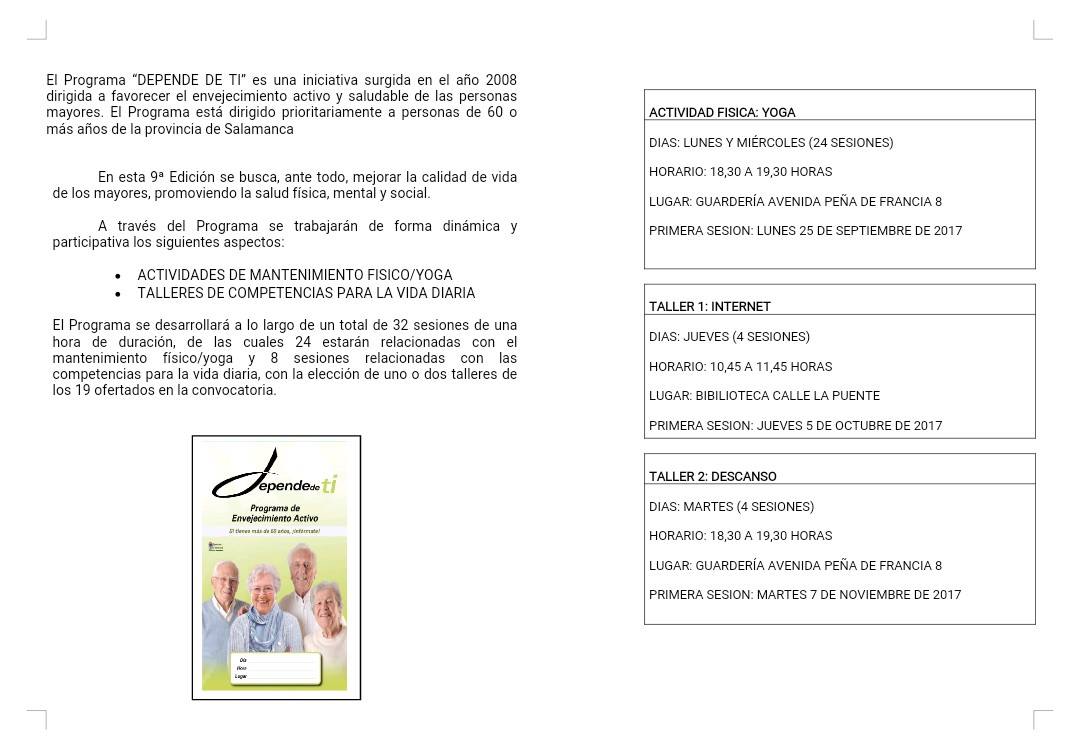 La Alberca está acogiendo una nueva edición del programa 'Depende de ti', auspiciado por la Junta de Castilla y León y Diputación de Salamanca, destinado a mejorar el envejecimiento de la población a través de actividades saludables, culturales y de utilidad diaria. Los destinatarios son personas de 60 o más años de la localidad. Este año se ha iniciado un primer taller destinado a aprender el uso básico de internet el pasado jueves, 5 de octubre. En total son cuatro sesiones que se irán ofreciendo cada jueves de 10:45 a 11:45 horas en la biblioteca municipal.