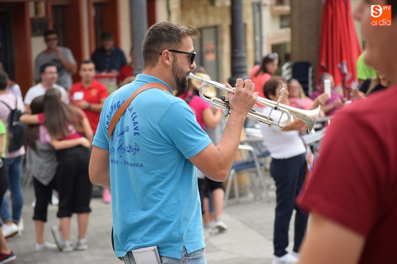 ALBA DE TORMES | Las peñas y jóvenes se congregaron en la Plaza Mayor para subir posteriormente hasta la plaza de toros acompañados por la charanga