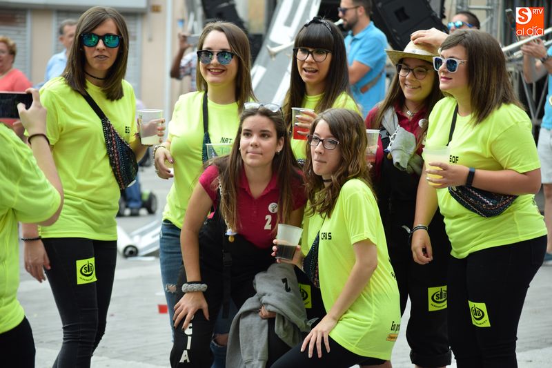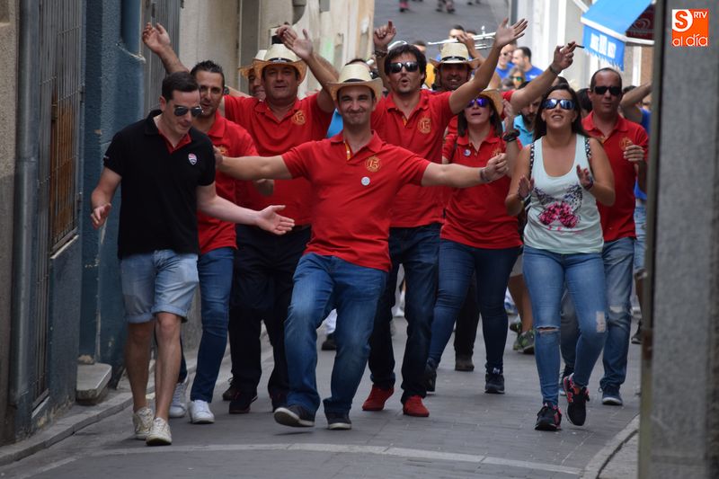 Multitud de jóvenes y peñas albenses se congregaron esta tarde para realizar un desfile de peñas. La quedada tuvo como punto inicial la Plaza Mayor. Desde allí, decenas de jóvenes acompañados por la charanga se dirigieron hasta la Curva Sur, donde bailaron y continuaron la fiesta hasta el momento de salida de los toros del cajón. La fiesta y la música continuó después de la capea en los anexos de la plaza de toros con una discotea móvil.