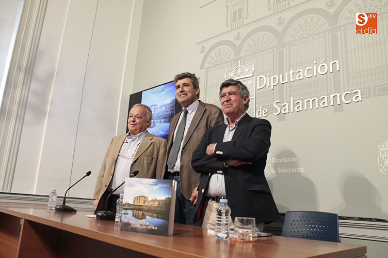 El diputado de Cultura, Julián Barrera, y el autor de la obra, Gonzalo Santonja, presentaron, junto al alcalde de Béjar, Alejo Riñones, el libro 'Béjar. El júbilo de los días'. Un libro que fue Premio Miguel Delibes de Narrativa en el año 1999 y, por aquel entonces, la Cámara de Comercio de la localidad salmantina publicó 5.000 ejemplares.