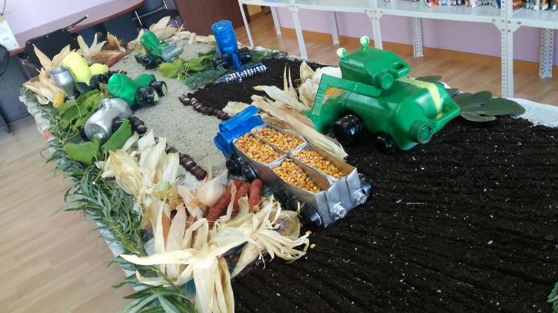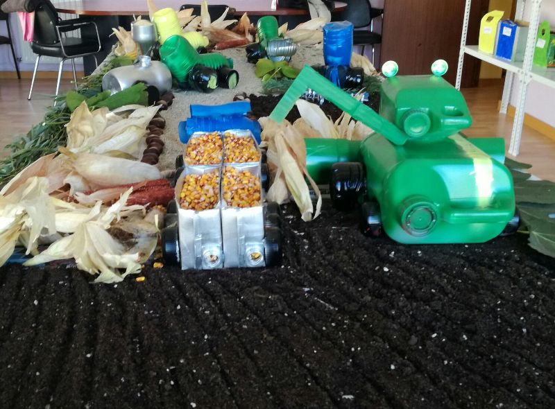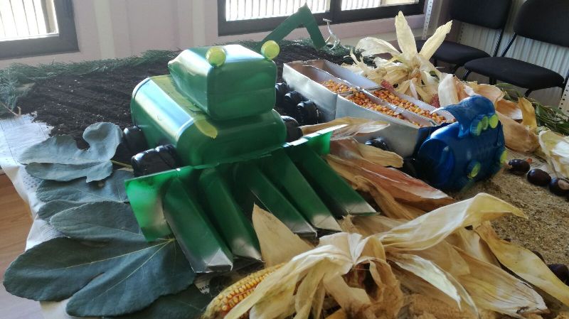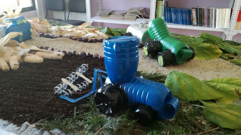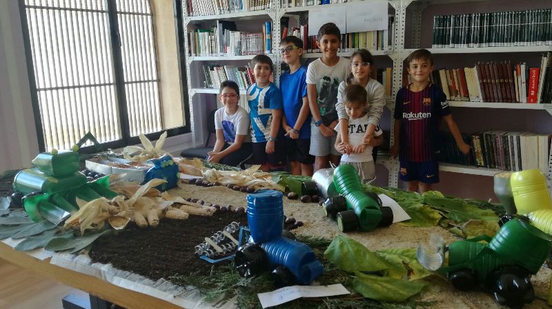 as que ellos mismos habían elaborado a través de materiales reciclados y también con elementos naturales como tierra, arena, hojas, piñas y frutos secos.