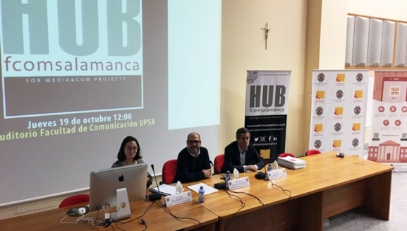 La Facultad de Comunicación de la UPSA ha presentado los primeros proyectos que acoge su nuevo HUB, un nuevo espacio para proyectos y empresas orientadas a la comunicación y el marketing. La presentación ha contado con el vicedecano de Ordenación Académica de la Facultad de Comunicación, Fernando Galindo; el director de la Oficina de Transferencia de Resultados de Investigación (OTRI), Luis Alberto Rivas; y la coordinadora del 'Hubfcomsalamanca', Elena Rodríguez.