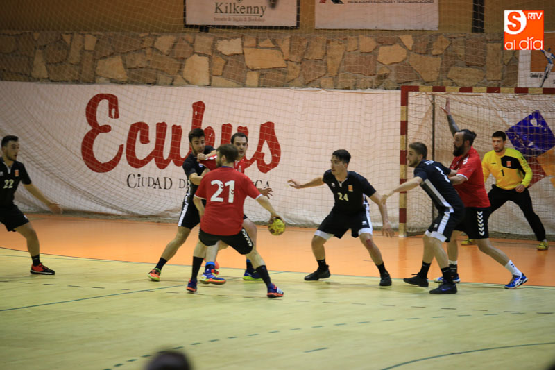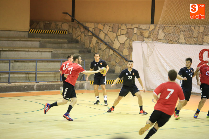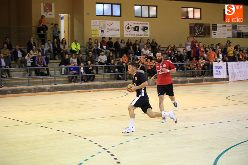 El choque comenzó de cara para los charros, alentados por su público. De un 4-2 se pasó a un 8-5 que daba tranquilidad al juego del conjunto de Alberto Martín. Pese al buen comienzo las cosas se comenzaron a torcer. Los ajustes defensivos de los madrileños noquearon a los locales, que ya no supieron atacar de forma tan dinámica a su rival. El choque se igualó (8-8) y del posterior 9-9 se pasó a un 9-13 tras unos malos minutos del BM Ciudad de Salamanca.
