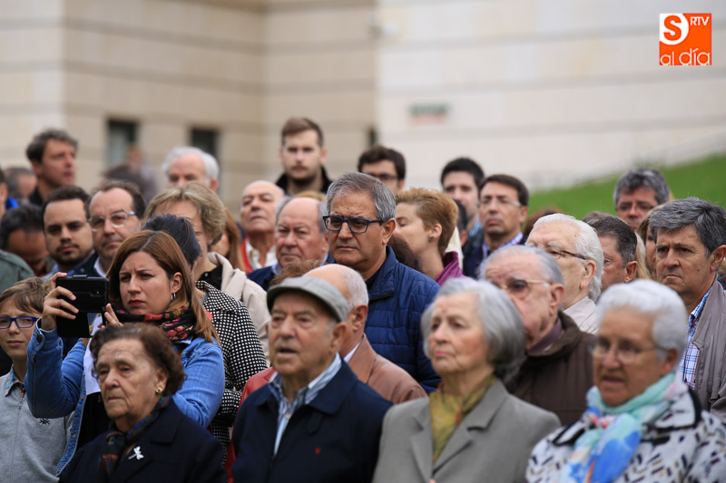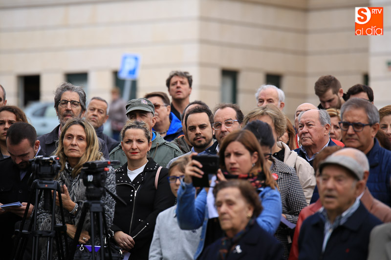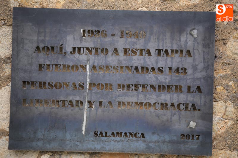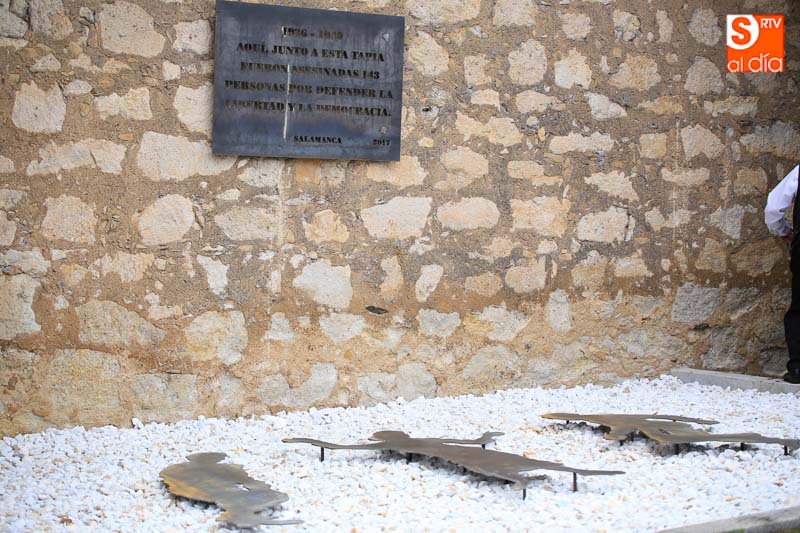 Con una puesta en escena a cargo de Josetxu Morán, se ha instalado junto al aparcamiento del actual tanatorio un placa conmemorativa y siluetas. Además, se ha dado lectura a los 143 nombres de los fusilados. El acto, que ha contado con la intervención de José Luis Pinto, autor del diseño del memorial, concluyó con los discursos de la presidenta de la Asociación Salamanca Memoria y Justicia y el alcalde de Salamanca, Alfonso Fernandez Mañueco. El Ayuntamiento ha colaborado en la adecuación de parte del aparcamiento del tanatorio San Carlos Borromeo para dar soporte a este proyecto y ha participado en la elaboración e instalación de la placa y en las esculturas que componen la escena.