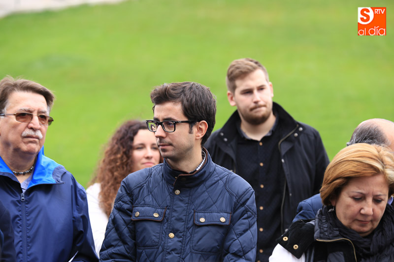 A pesar del tiempo desapacible, la Asociación Salamanca Memoria y Justicia ha homenajeado a los 143 fusilados en la tapia del cementerio de la capital charra, tras un juicio ilegal con una placa conmemorativa.