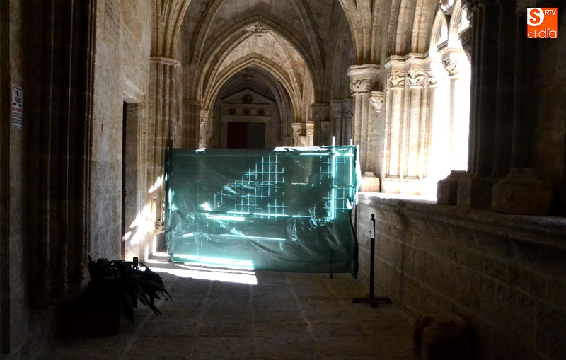 En este sentido, en el claustro se ha optado por suprimir los canalones que había, ya que habitualmente se tupían, optando por una salida más natural para el agua, que ha requerido, eso sí, la colocación de unas láminas de cobre en lo alto de los contrafuertes de las paredes del patio para evitar que el agua penetre en los mismos. Está previsto que estas láminas de cobre vayan cogiendo poco a poco un color más parecido al de la piedra.
