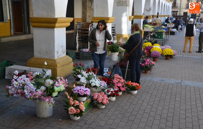 Como ocurre todos los años por estas fechas, el tradicional mercado de frutas y verduras que se instala todos los martes del año en la Plazuela del Buen Alcalde de Ciudad Rodrigo ha ganado en colorido en las últimas semanas, gracias a las flores.
