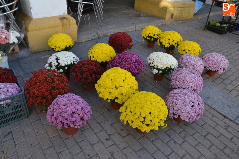 El motivo no podía ser otro que la inminente celebración de la festividad del Día de Todos los Santos. Como se puede ver en las imágenes, el mercado de la Plazuela contó en la mañana del martes con dos puestos dedicados exclusivamente a la venta de flores, destinadas a adornar los camposantos de Miróbriga y comarca en los próximos días.