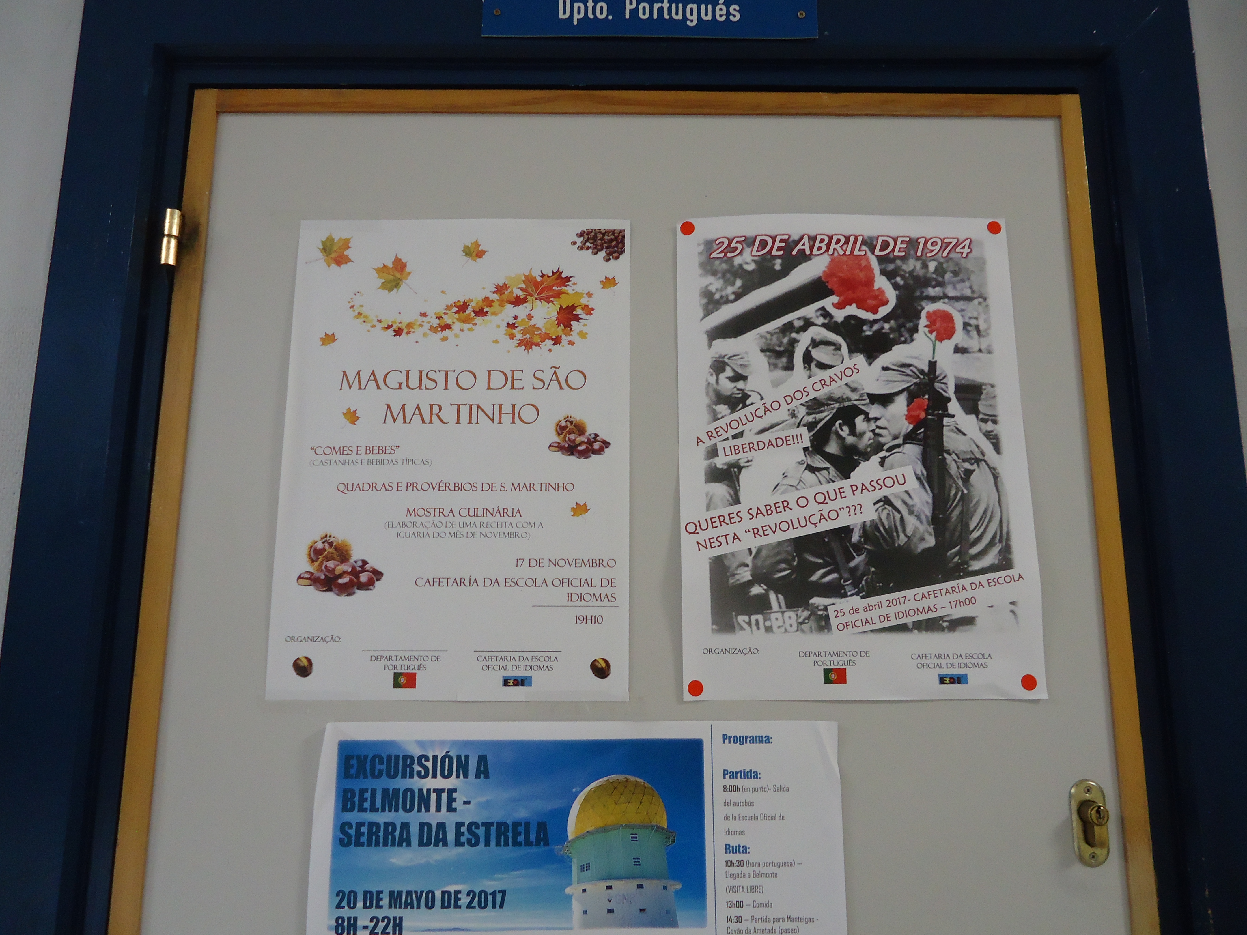 El Departamento de Portugués de la EOI de Salamanca implementa con algunas actividades extraescolares realizadas a lo largo de todo el curso, la aproximación a la Historia y la cultura portuguesas, así como con alguna excursión al país vecino.