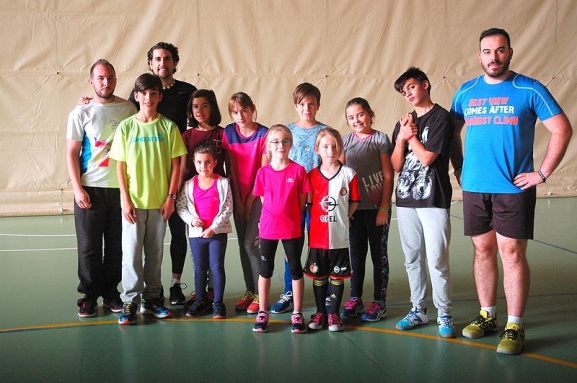El velocista guijuelense, David Alejandro Castro era el protagonista ayer de una 'master class' con los alumnos de Atletismo de la Escuela Municipal de Deportes. El Pabellón Municipal de Deportes servía de lugar de encuentro entre la decena de chicos y el atleta local que esta temporada forma parte del club Fent Cami Mislata, conjunto de la División de Honor del Atletismo. "Es muy satisfactorio poder entrenar con unos niños que ponen toda su ilusión en este deporte", apuntaba David Alejandro antes de iniciar los entrenamientos. Durante más de una hora, el atleta participó en las actividades de calentamiento a base de juegos y pudo aconsejar a los peque?