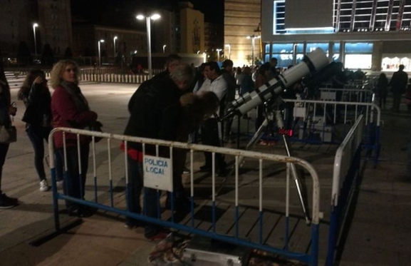La Organización Salmantina de la Astronáutica y el Espacio (OSAE) ha llevado los telescopios a la plaza de la Concordia (detrás de El Corte Inglés), de 20.00 a 23.00 horas, para que todos los intersados pudieran observar la Luna a través de ellos y unirse a las miles de personas de todo el mundo que la observarán esta noche.