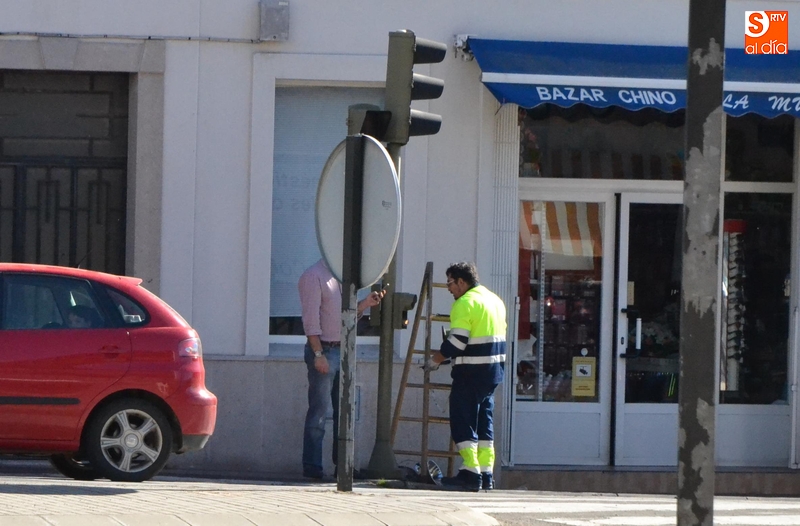 Posteriormente, en el primer tramo de la tarde del sábado, se procedió a renovar los semáforos que hay en la Avenida de Béjar a la altura de la calle Laguna.