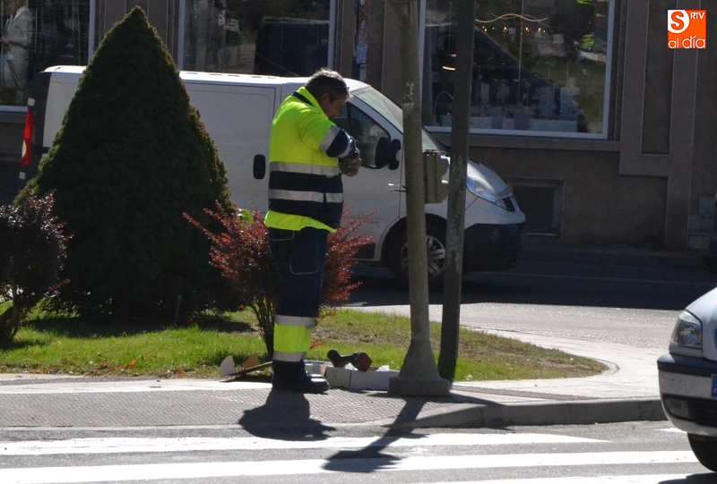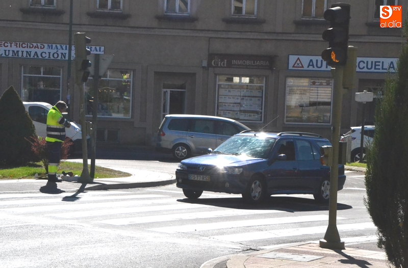 Coincidiendo justamente con el día de la semana en que más movimiento de peatones y vehículos se registra a lo largo de la mañana en las calles de Ciudad Rodrigo, todos los semáforos de la rotonda de El Cruce fueron objeto en la mañana del sábado de una operación de renovación de sus luces.