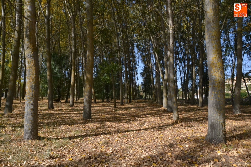Las temperaturas de las que se continúa disfrutando en estos últimos días del mes de octubre están lejos de ser del todo otoñales, al menos en las horas donde luce el sol. Pese a ello, las zonas arboladas de Ciudad Rodrigo se han ido vistiendo en las últimas semanas del color ocre propio del otoño que genera la caída de las hojas de los árboles.